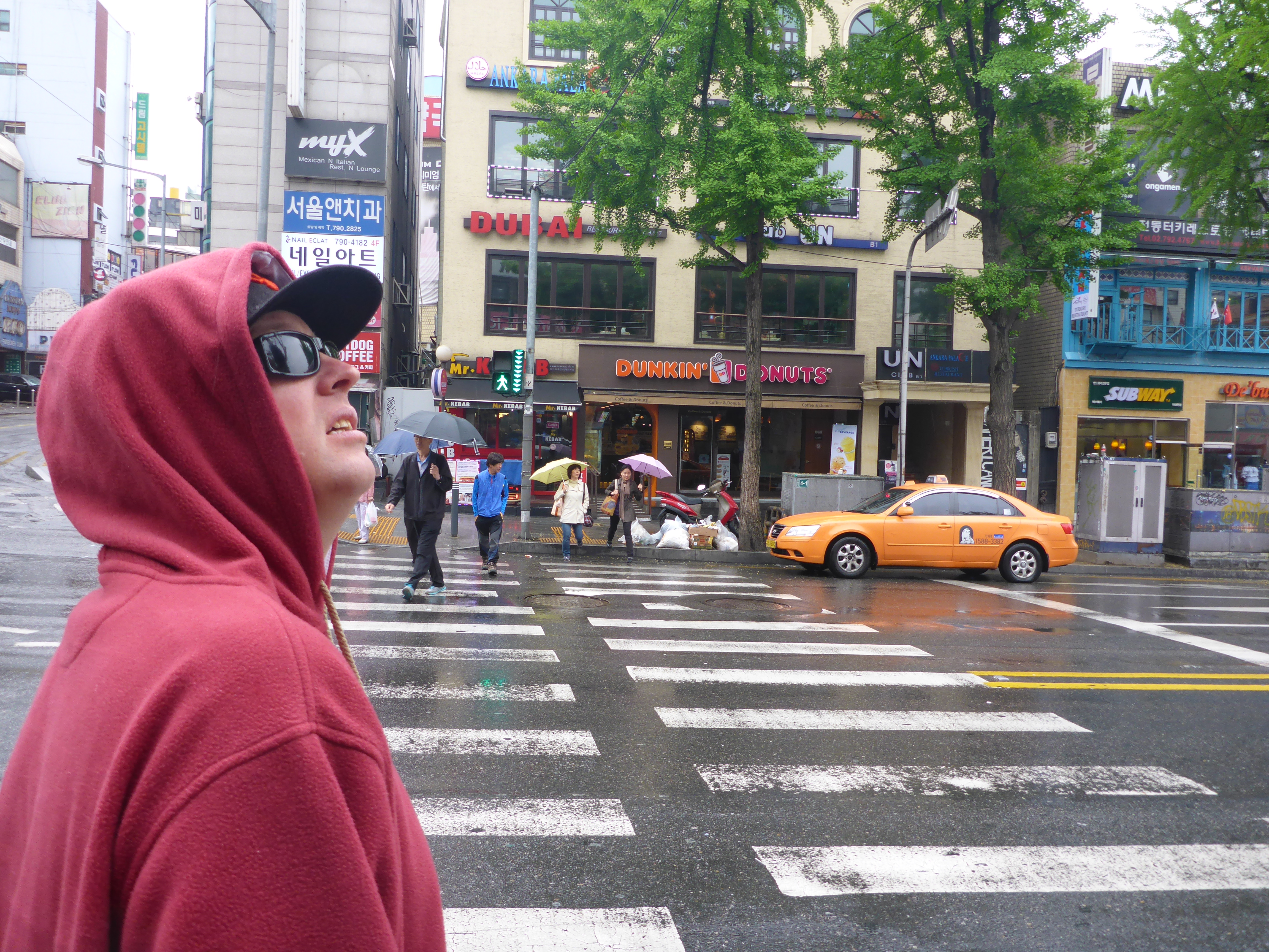 I had read that Dunkin’ Donuts was an experience to be had in South Korea, and there is one on the main drag there in Itaewon. We decided to kill some time trying out the famed Chewisty donut (made with tapioca flour) and get some coffee.