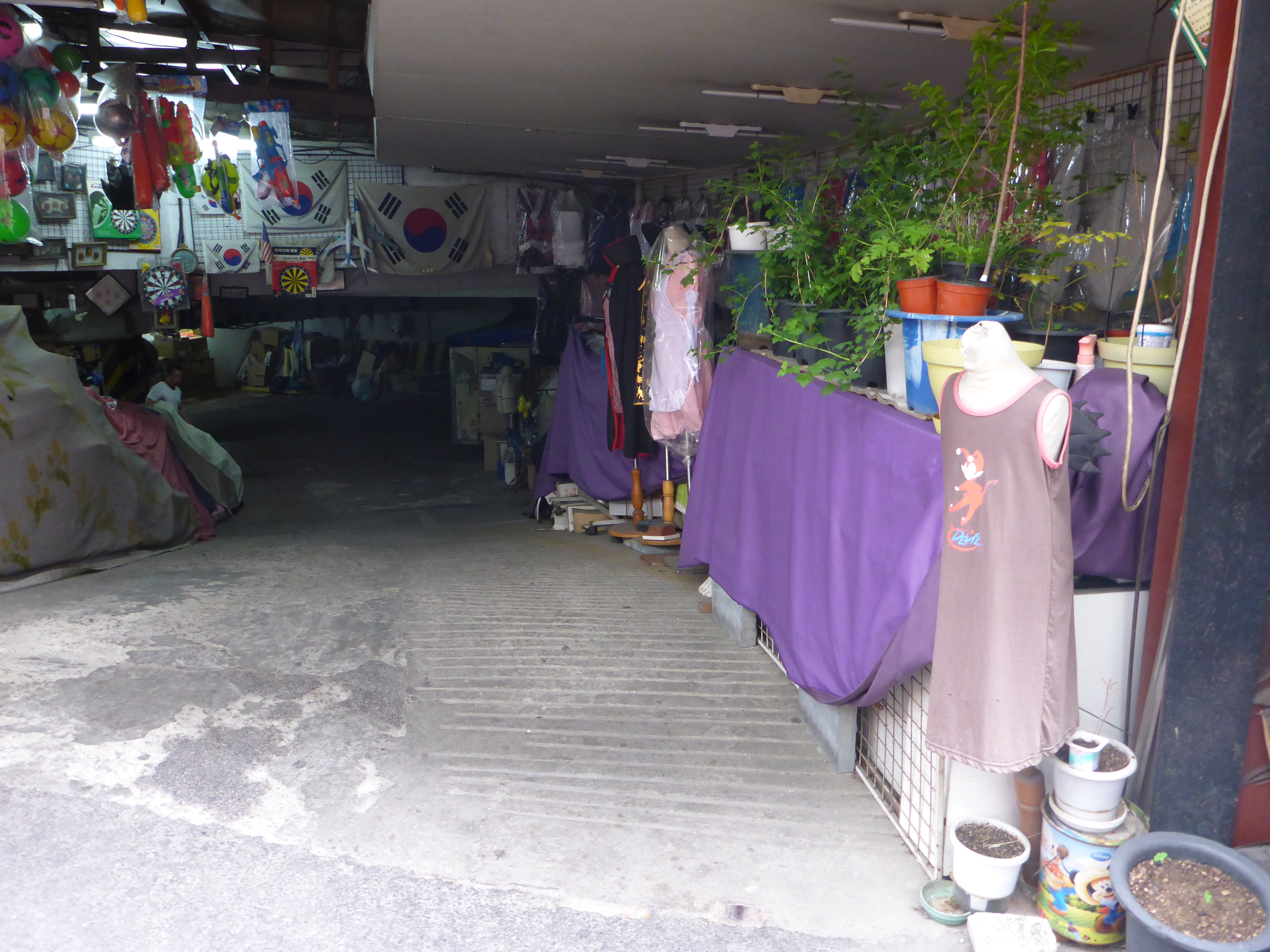 There are a lot of “underground” shops in Itaewon. Some are just large doorways, or what looks like an entrance into a hall of some kind, with wide sets of stairs leading down into the shopping area. Others look like the entrance into a parking garage, with a wide ramp to walk down, with various tsotchke’s for purchase lining the sides.