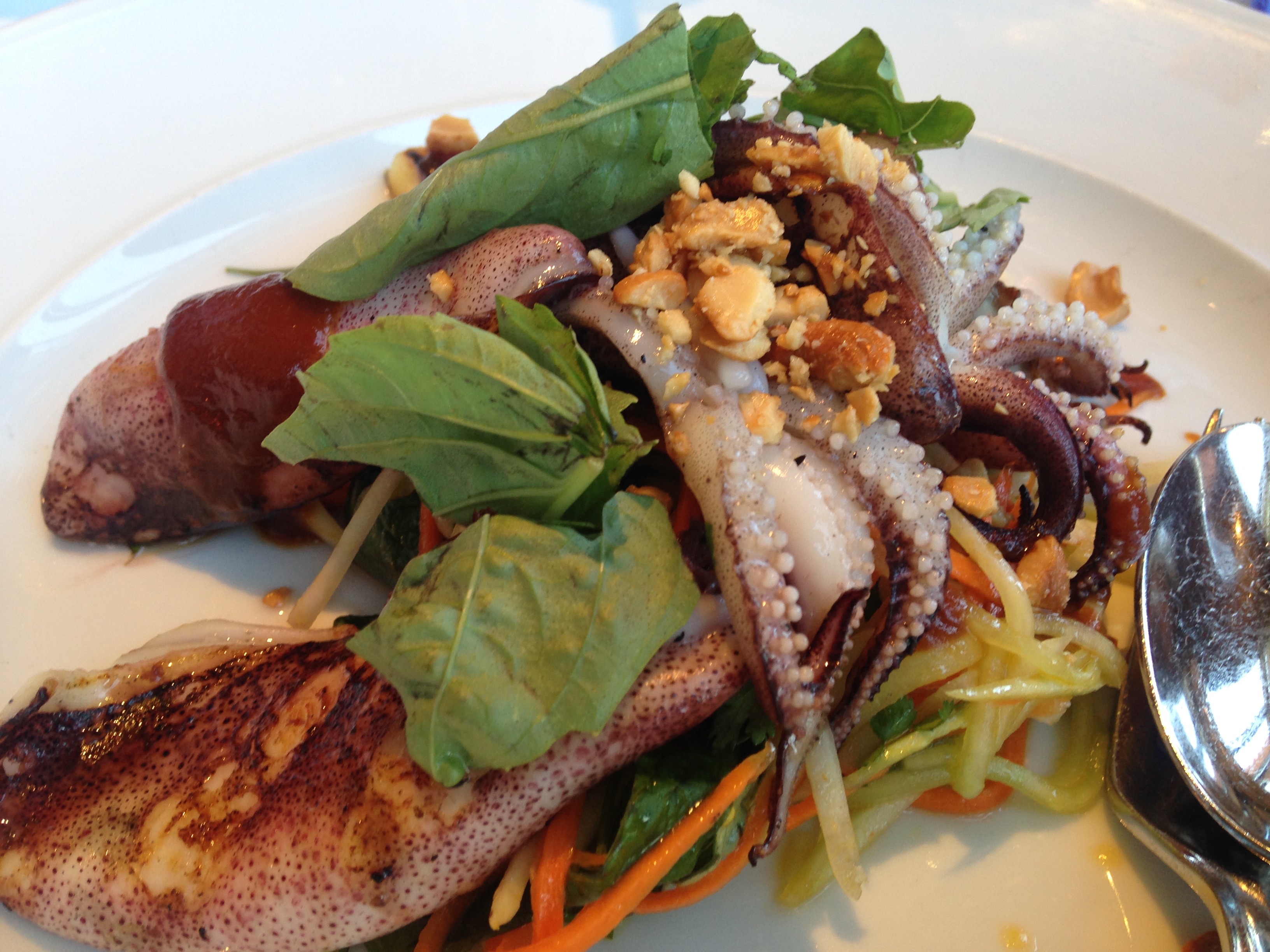 We ordered our other main off of the regular lunch menu, the grilled Monterey squid with green papaya slaw, grilled pineapple, and tamarind barbeque.