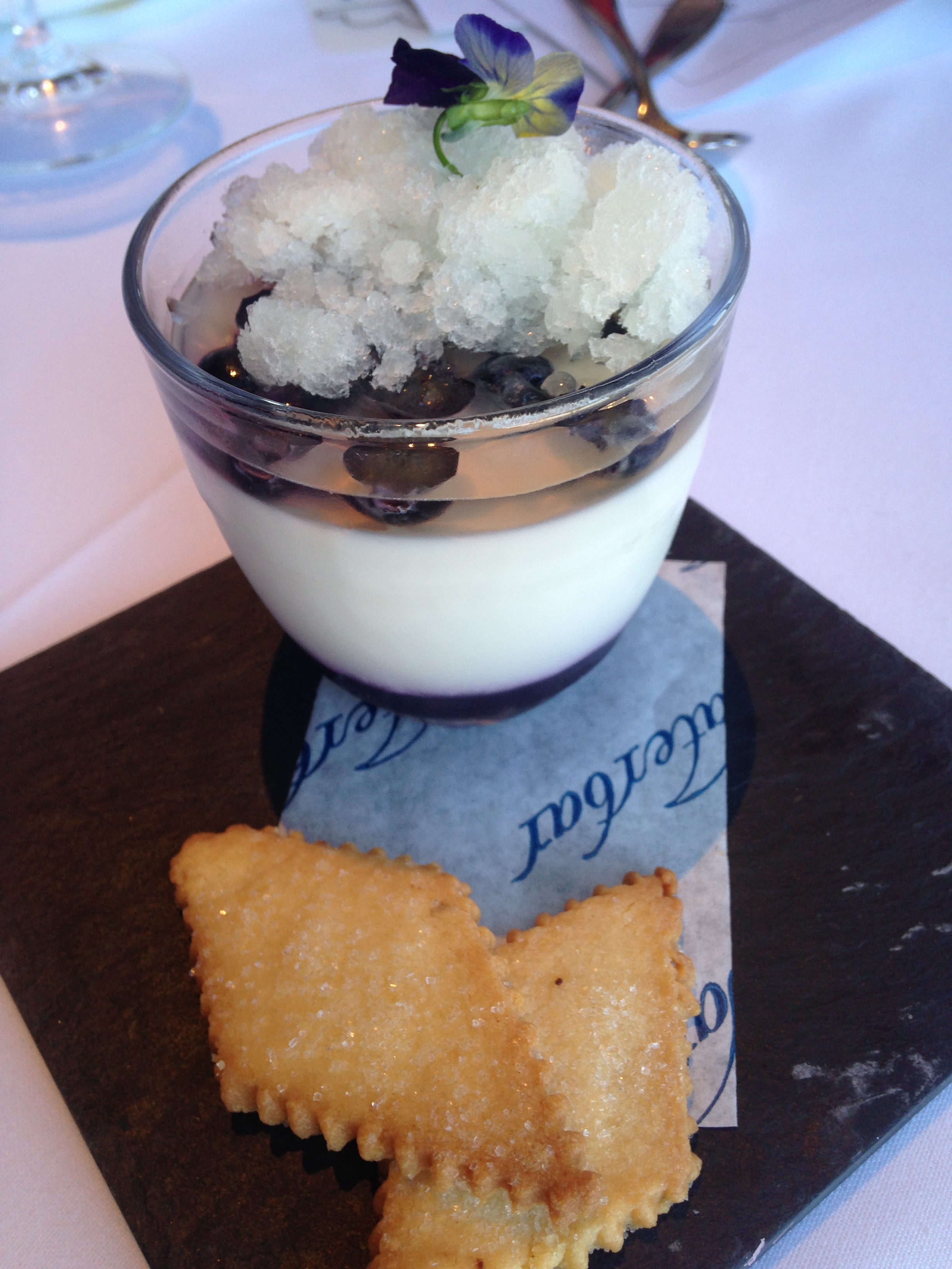 We went with our servers recommendation for dessert-the lemon verbena panna cotta with blueberry compote and lemon shortbread.