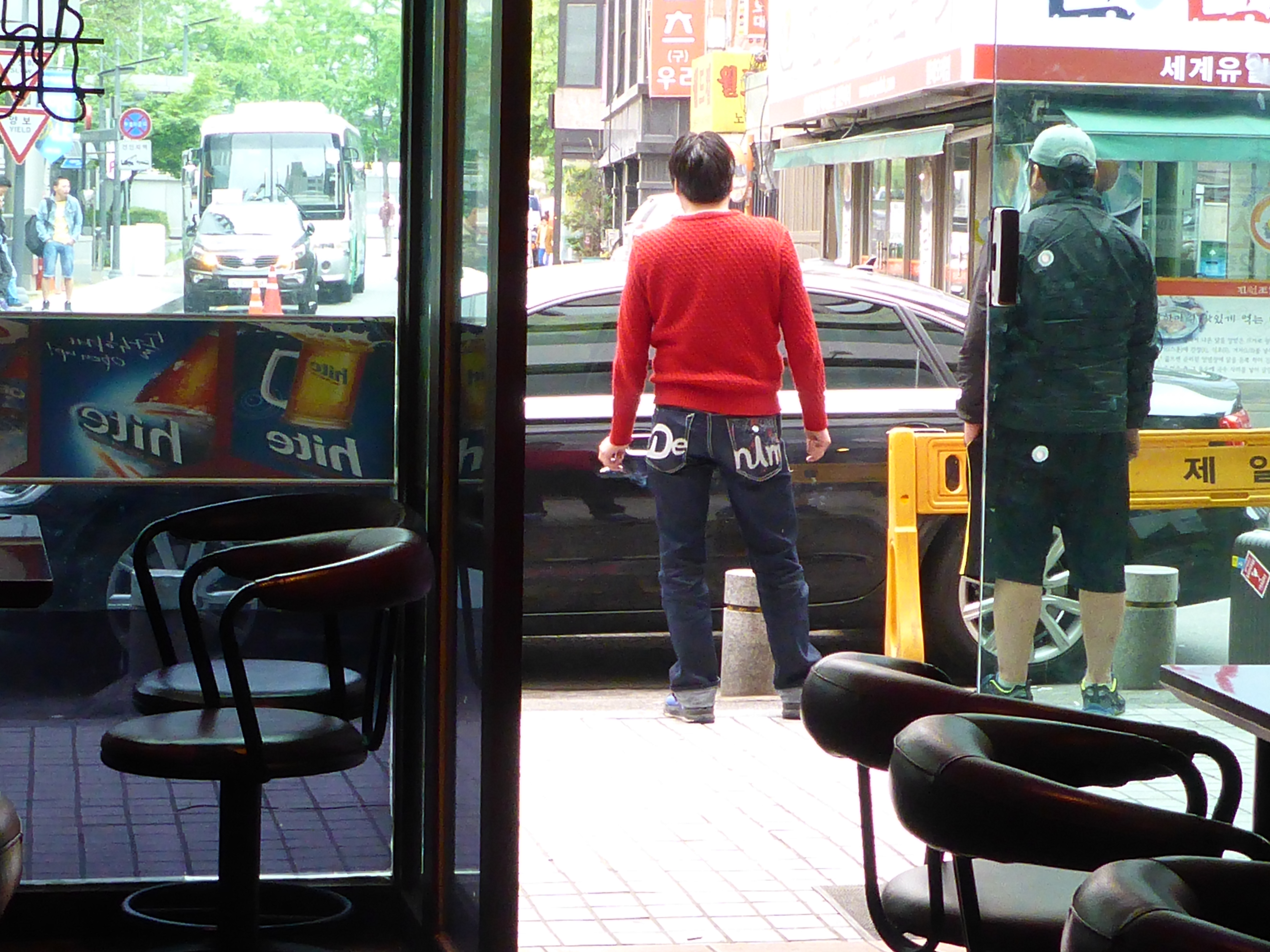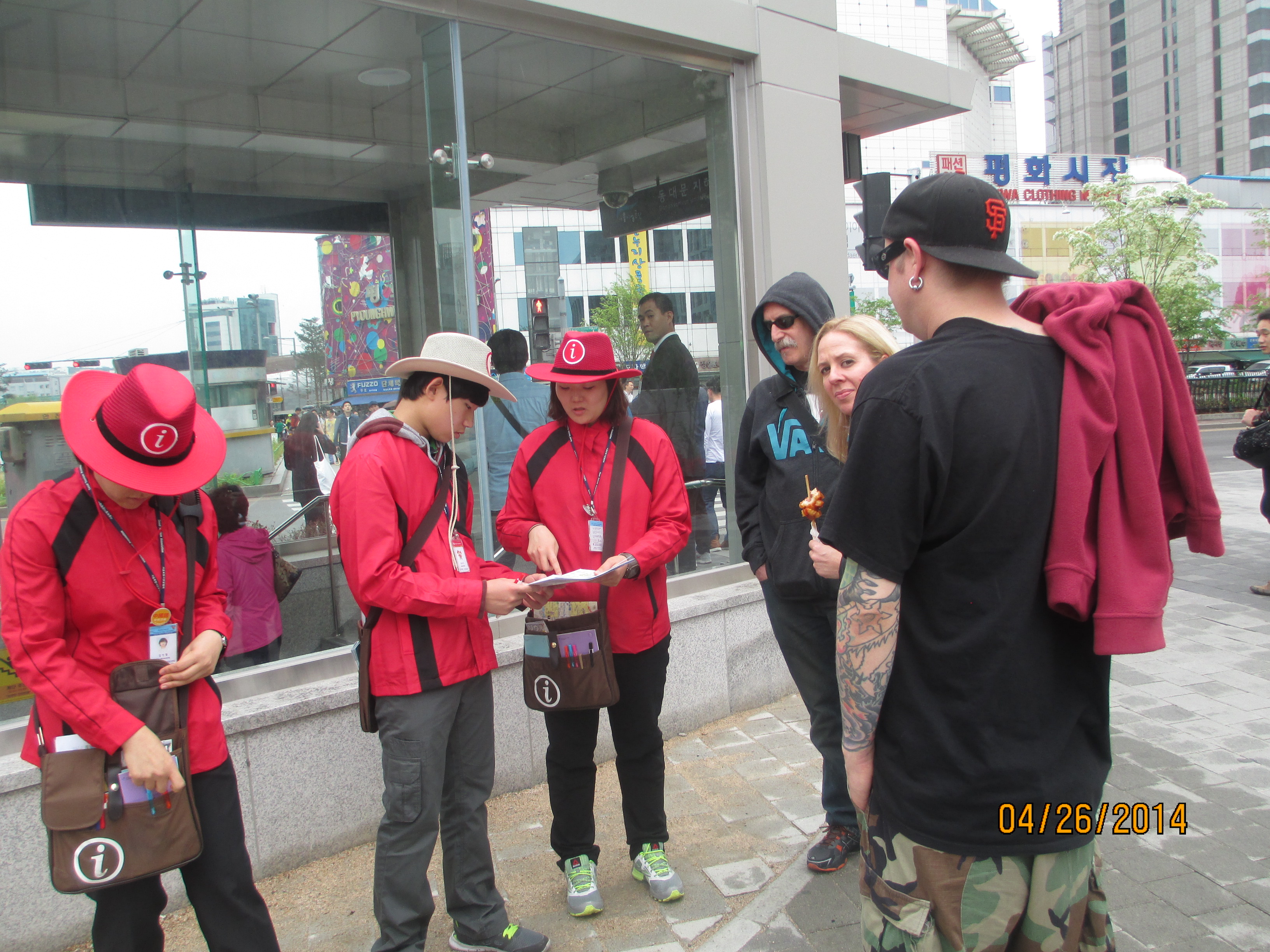 Finding a beer was not so easy. In the sea of malls, we couldn’t spot signs for restaurants or alcohol anywhere. Then we spotted the tourism cowboys of Seoul. In an effort to be as tourist friendly as possible (and it is an extremely tourist friendly place), the city posts volunteers in major shopping areas, armed with maps and English-speaking skills (I would guess they speak Japanese as well), adorned in red vests and red cowboy hats, ready to give information, advice, and directions to tourists. They are friendly young kids and I just think it’s above and beyond that Seoul does this. I imagine the tourist experience in San Francisco is quite different indeed.