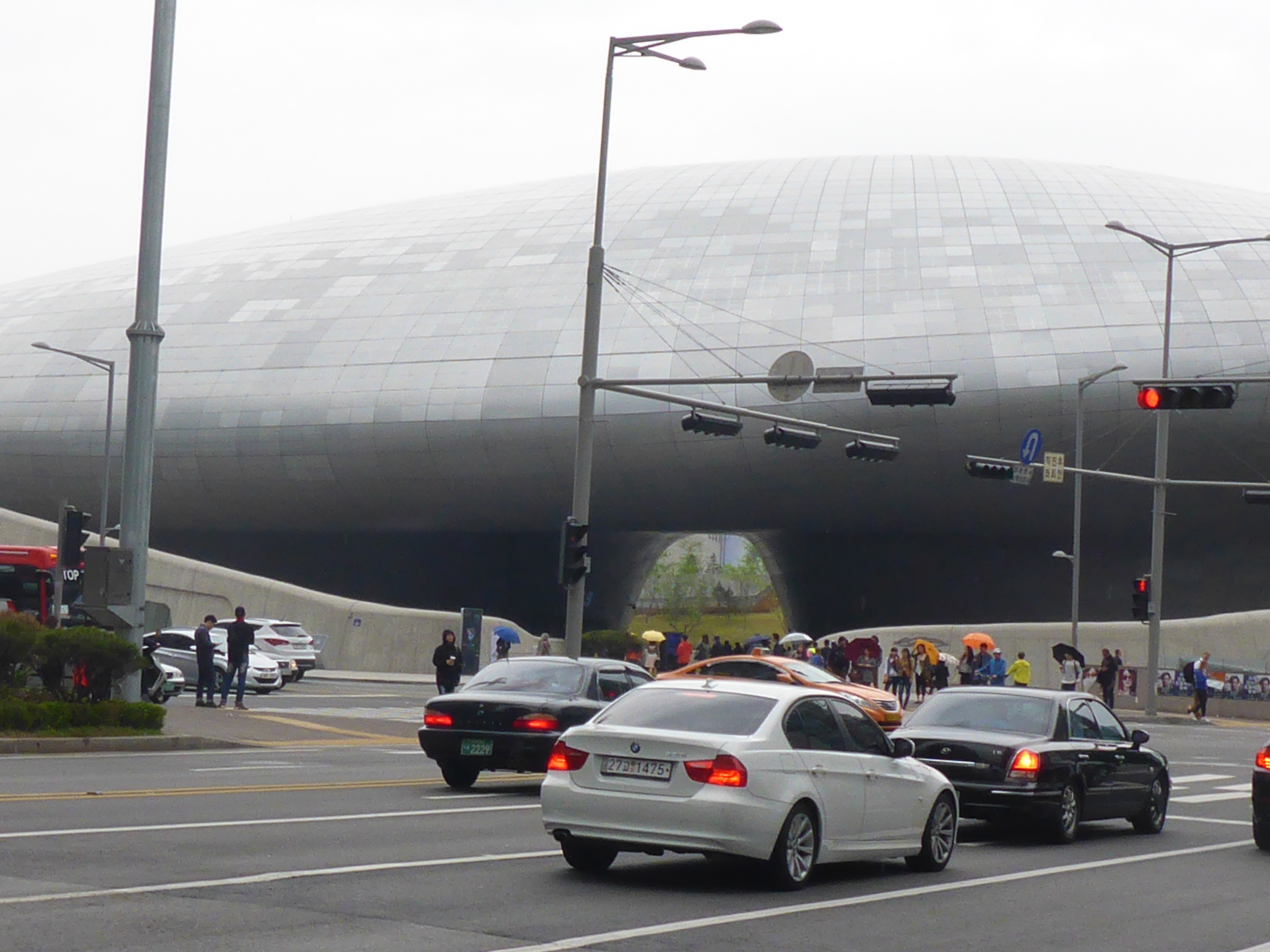 We hopped a cab there, and of course, when we got out we weren’t really sure where to head to find the action. We were dropped right next to the new Dongdaemun Design Plaza, an enormous building that is better described as an enormous, futuristic, space ship like, art installation.