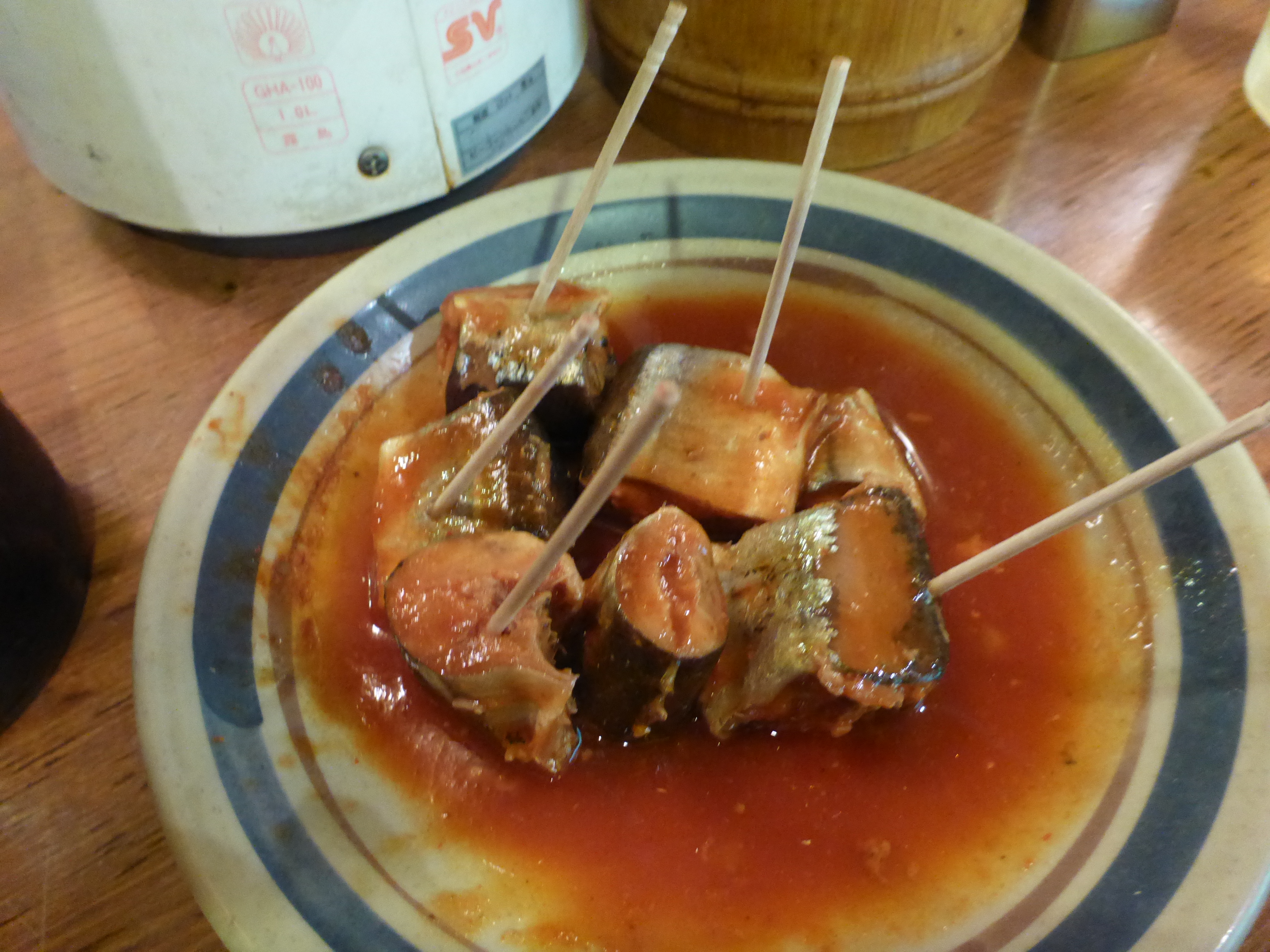 We ordered a couple of snacks and were sent mackerel in tomato sauce by another patron.