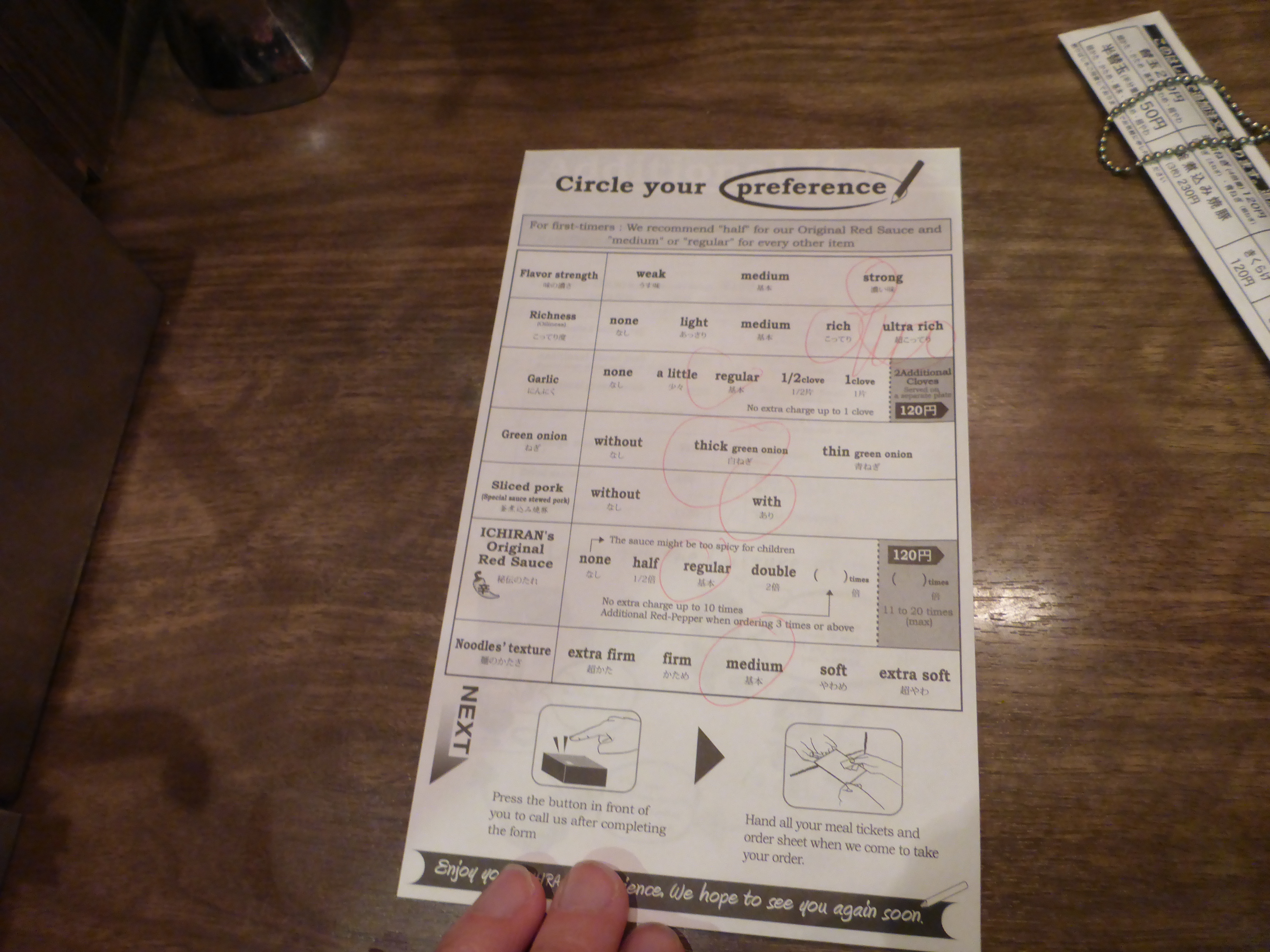 Listed on the paper was a selection of flavor/texture preferences for the strength of the broth, the spiciness, the doneness of the noodle. I mean, it is just so awesome. We all looked like little schoolchildren dutifully filling out our forms. It’s just too much. Seriously.