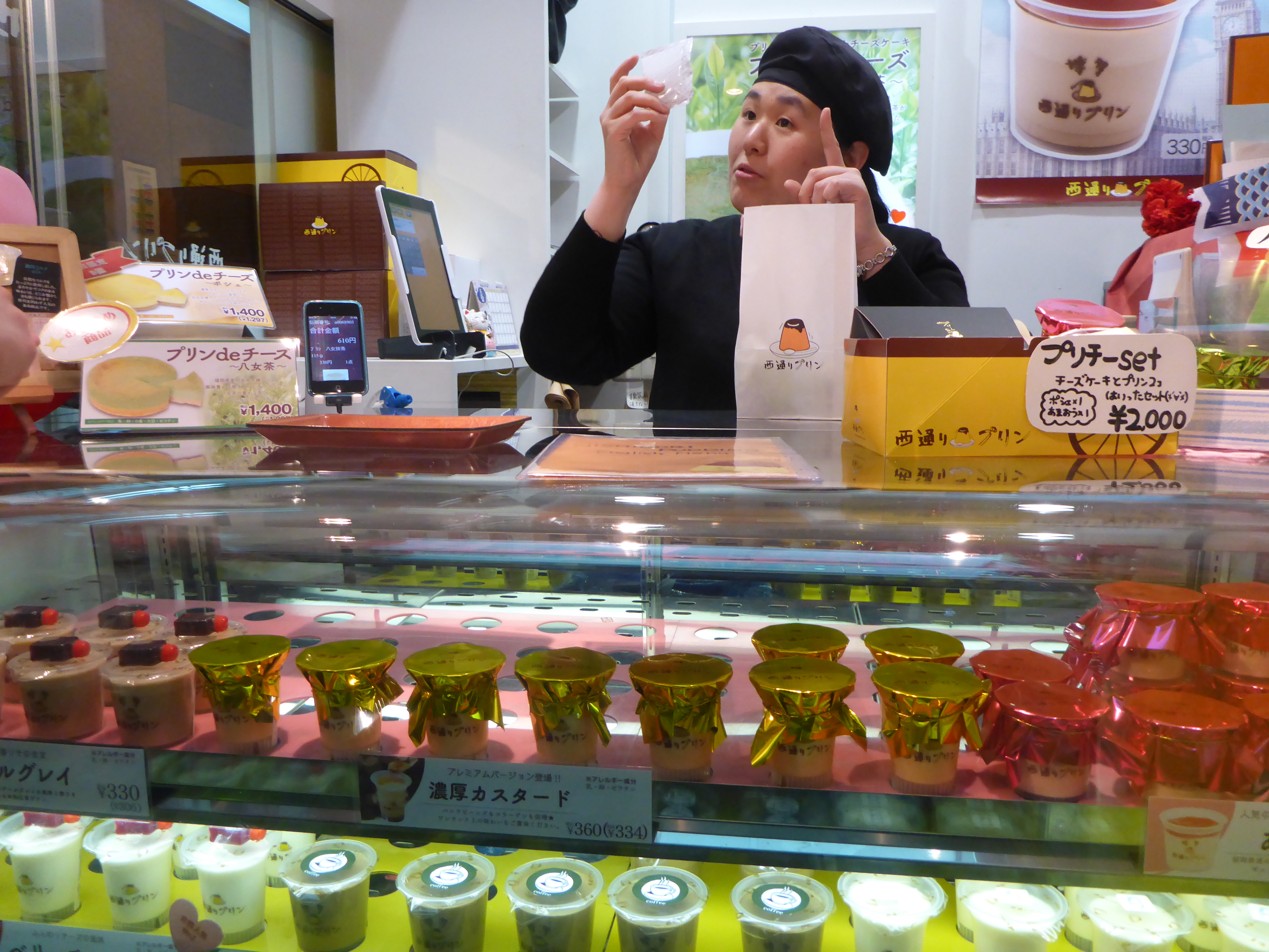 Next door to Ichiran is an adorable pudding stand, and that night, there was an adorable girl working the pudding stand. We got some to bring home for a late night dessert.