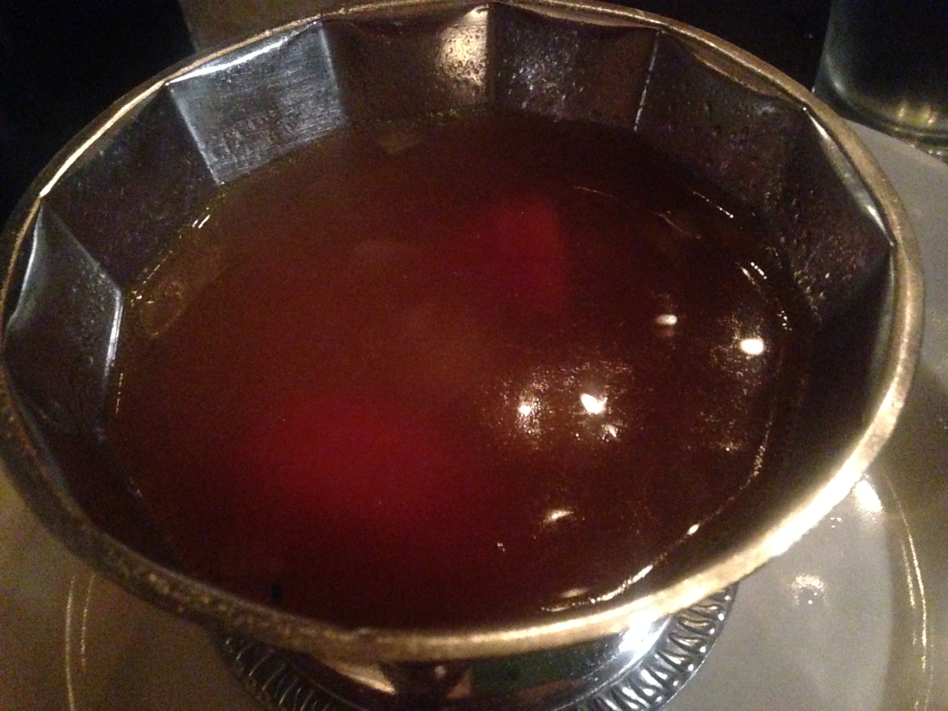 We sat in one of the cherry red leather booths and started a barrage of ordering. Our server fairly told us that the portions are large, and that we could easily get away with ordering less than we did, but, we had a plan and we were sticking to it. Before any of the items we ordered arrived, we received the complimentary bowls of pasta e fagioli, which comes to every diner before every meal. It comes in a metal bowl, almost like a large shrimp cocktail bowl, which enhances the flavor to me. What can I say, I am a sucker for packaging. They are wise to serve that soup as their universal item-it’s perfection. The broth tastes like a rich melted parmesan and vegetable elixir. I drank mine and the rest of someone else’s. On a rainy day, it would be a real soul saver.