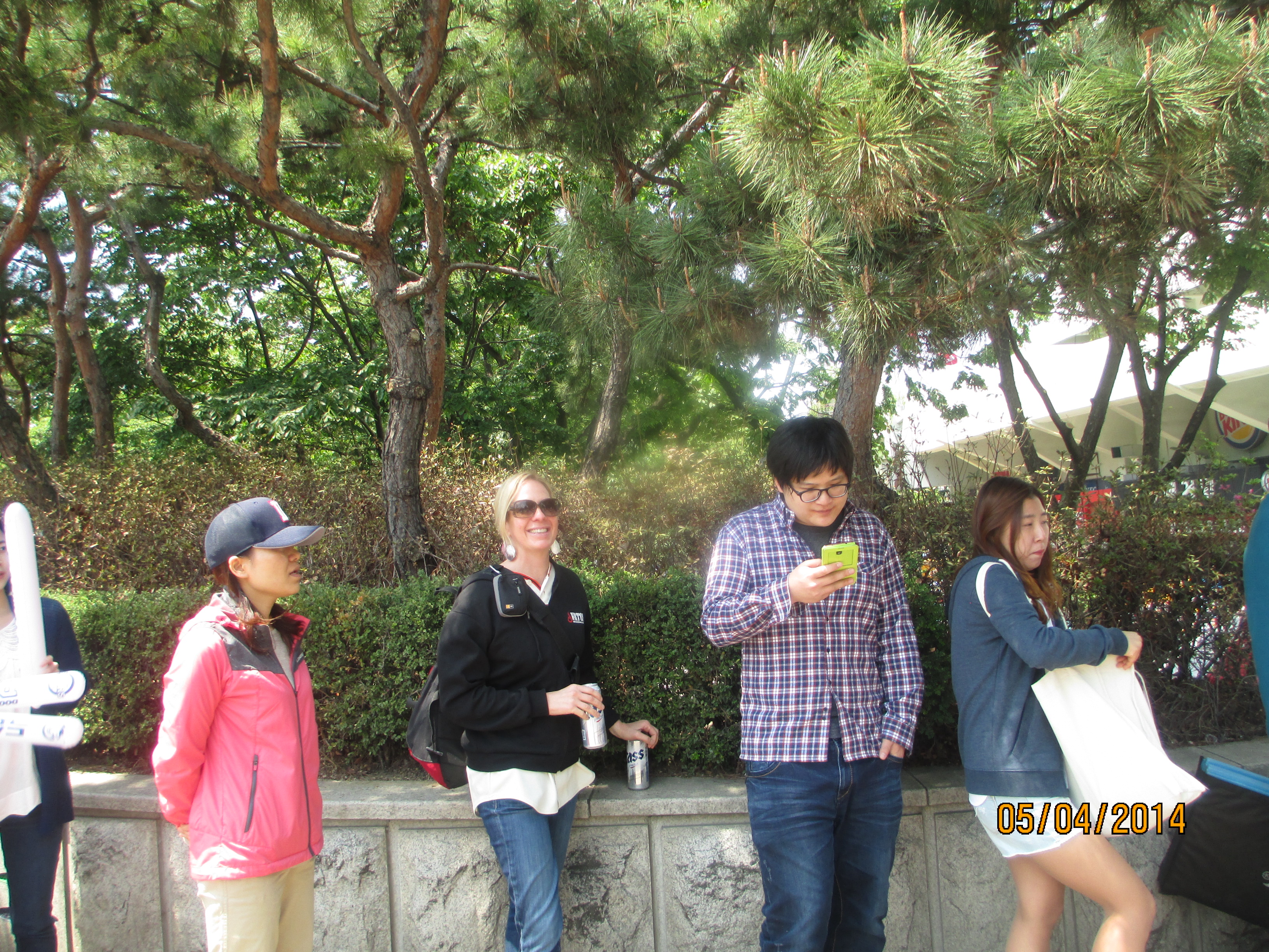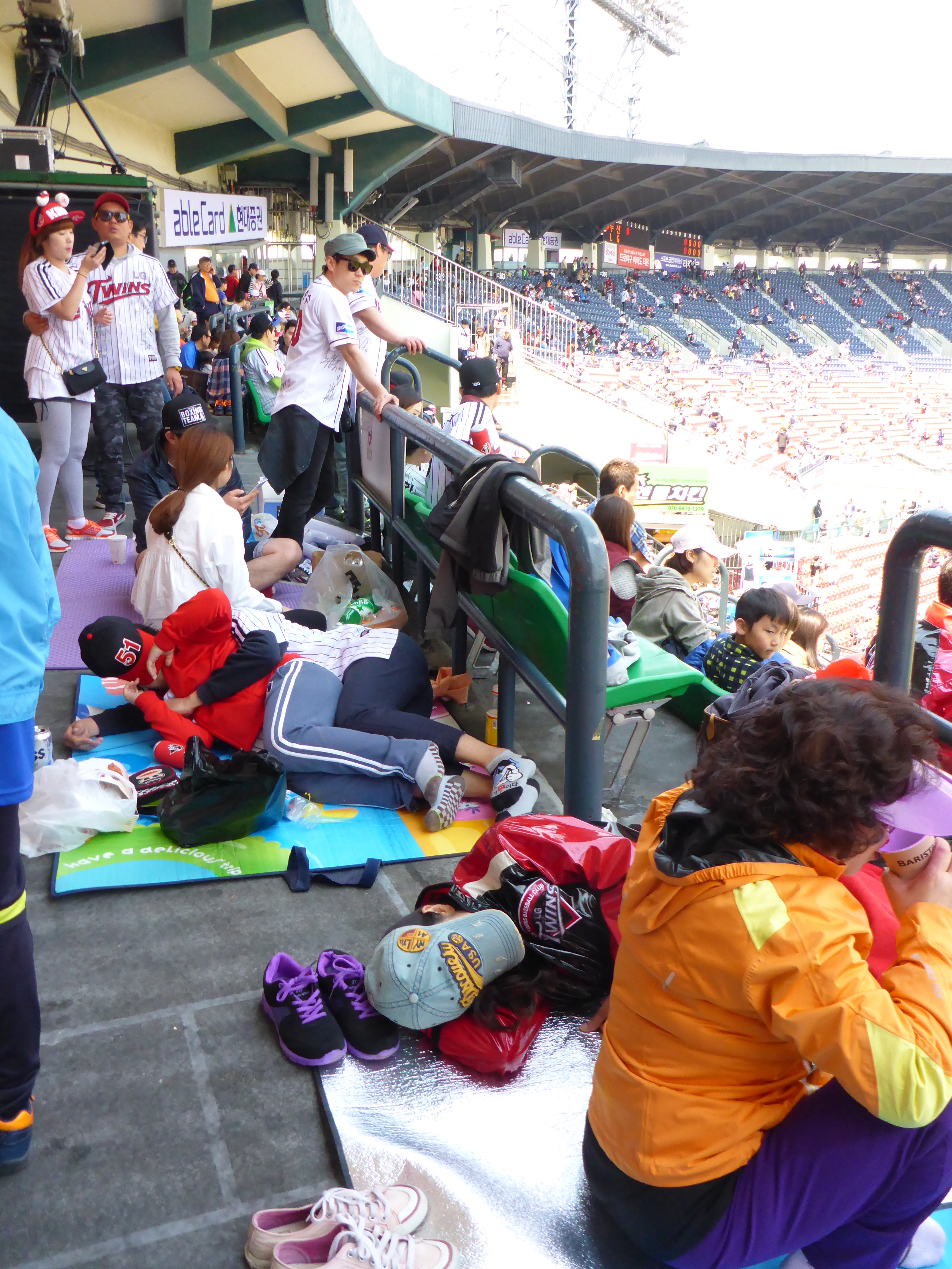 Seoul kind of has two stadiums. Jamsil and Munhak. Munhak is actually in Incheon, about an hour subway ride away. From what I could gather previous to our trip, Munhak is less popular and therefore, day-of ticket purchases are easier (or so I thought). Since my brain melted just trying to figure out who was playing where and when, advance ticket purchase was a far more extreme prospect than I could handle. So, the plan was to get to Munhak a little early on May 5th, where we would buy our tickets. The morning of the games, I consulted the front desk at the Ramada. I told Kirby, the fabulous man who was working, what our plan was. He told me that Jamsil was about five minutes away from the Ramada and that we were basically pretty stupid if we took the subway all the way to Incheon. Both games, at Jamsil and at Munhak were surely sold out according to Kirby. It was a Monday, but unbeknownst to us, it was a holiday. Children’s day specifically. One of the many days celebrated during the Golden Holidays.