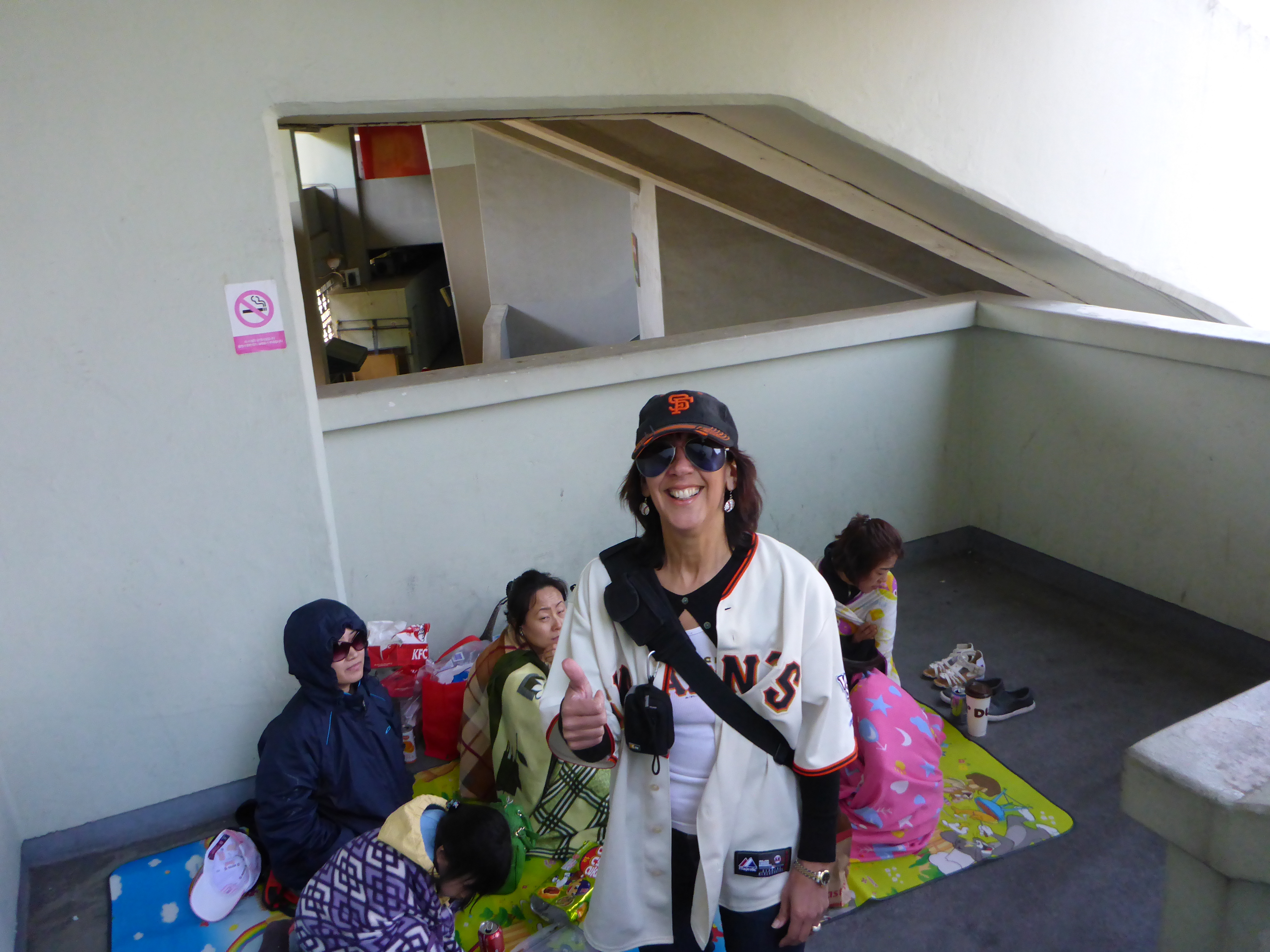 At first, we waited in that long line that wrapped around the outside of the stadium, certain we were in the right place to buy tickets. Somehow, we figured out that was actually a line to get IN, and that we needed to go elsewhere for actual tickets. I spotted some white faces in a different line and asked if they spoke English. Jackpot. American expats, ready and willing to be our translators/guides through the process.