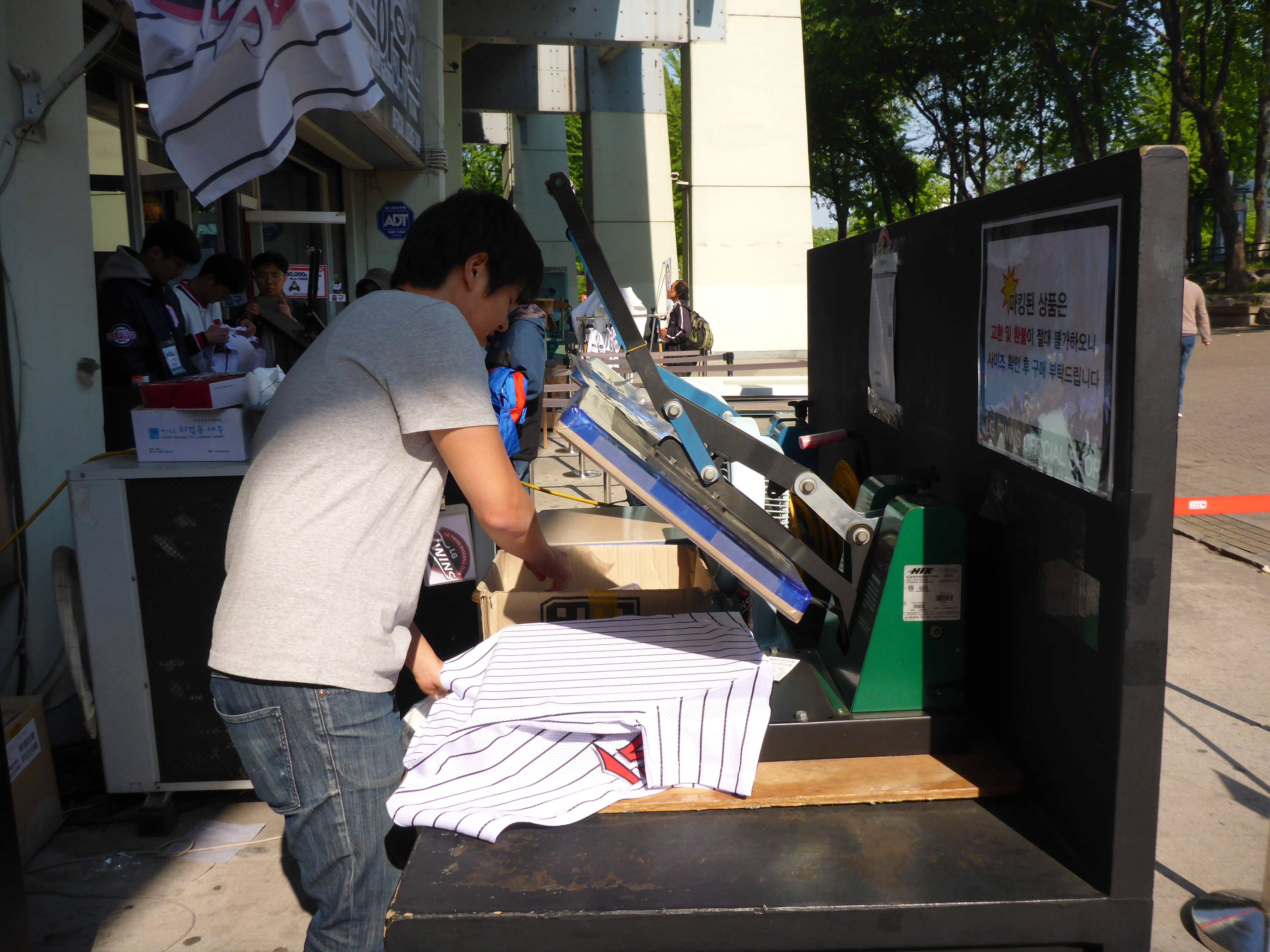 I just could not wrap my brain around it. Still can’t. At some point, Randi and I went out to the dugout store to purchase what would surely be some ridiculously cheap Korean baseball gear. In particular, I was in the market for a jersey. Since we were at both teams “home” stadium, there was a dugout store for each team, inside of which were jerseys priced just like they are in America. *sob*