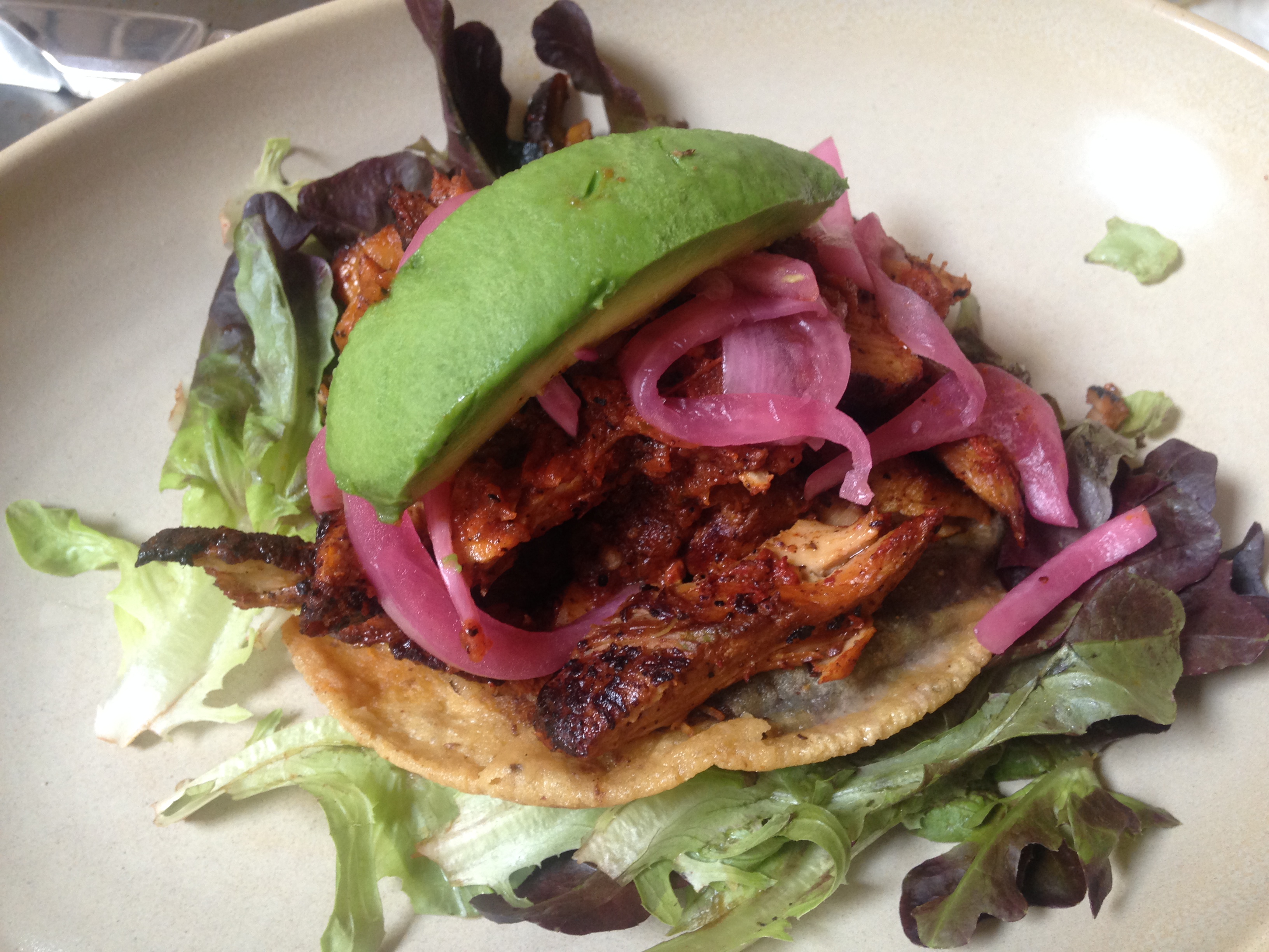 This last guy, the panucho, a tortilla filled with black bean puree, chicken, greens, and avocado, was my least favorite. For one, I was in total rapture over the quesadilla, and secondly, the panucho just kinda lacked punch. I would have liked a little more acidity, though to be fair, we were all splitting it and I it looks like there was a good amount of pickled onion that I missed out on.