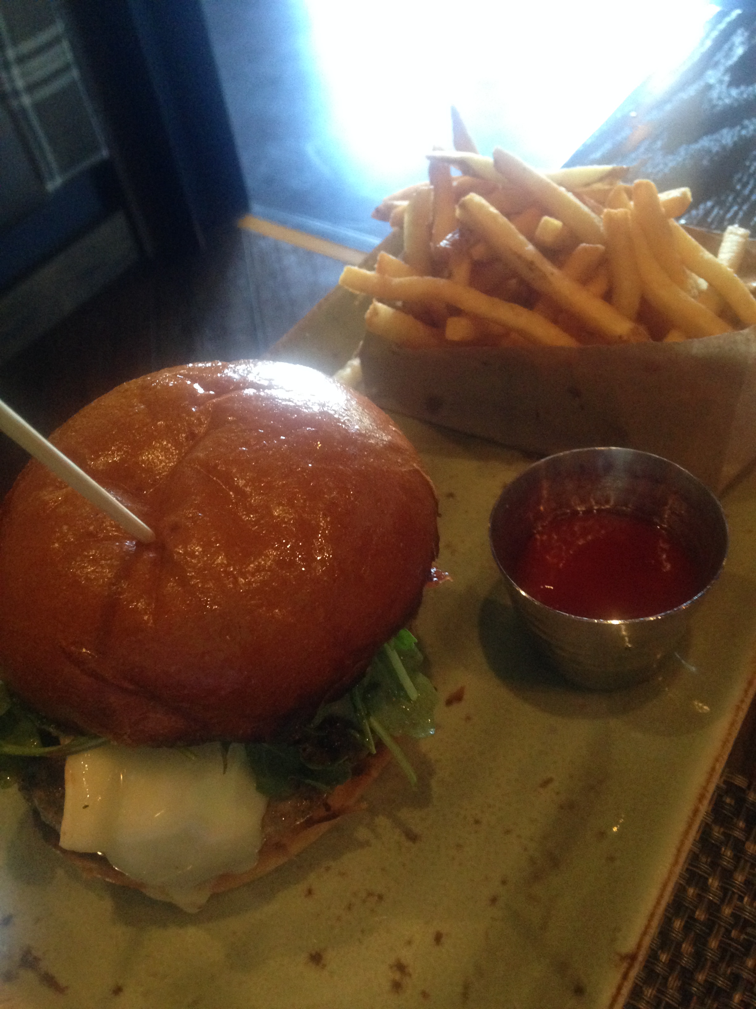 The burger tasted like it had a middle eastern flare to it, or so it seemed, I suppose from the tomato cranberry jam. The bun was nicely browned, and soft, the brie and arugula toppings made for an overall creamy and peppery experience. We ate every last bite of that burger and those fries, along with a nice, crisp, cold, craft saison. Life was good.