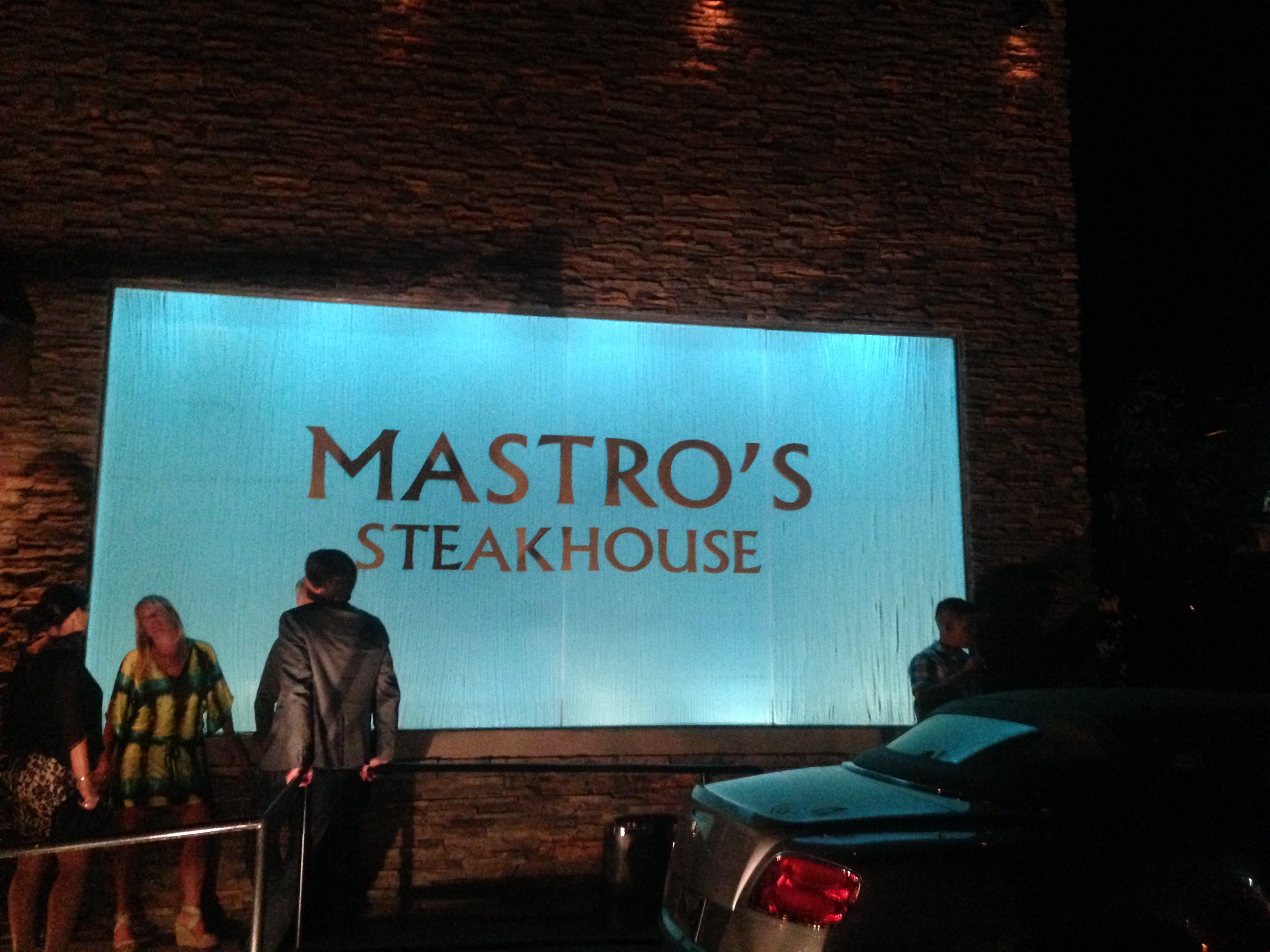 My god. I had NO idea what was in store for me at Mastro’s. My GPS took me there, and because I didn’t know where I was, I turned at the last turn to find myself trapped at a valet stand, even though we were basically in the middle of a business park and there was nothing but parking available on the deserted street. Whatever, the valet was $4.50, so screw it. There were probably ten people milling around outside, smoking, in front of the Mastro’s sign. I tried to avoid them and walk to the front door, but my direction of choice just took me past the Maserati’s and Porsche’s parked in the special valet spots, and directly into the bushes. The valet did not think to tell me I was going the wrong way. All indications were, this place was trying to be really fancy but was seriously missing the point. So I reversed course and headed for the smokers, wading through cigarette stank and an unexpected curtain of perfume and cologne, and into a people watchers Shangri-La.