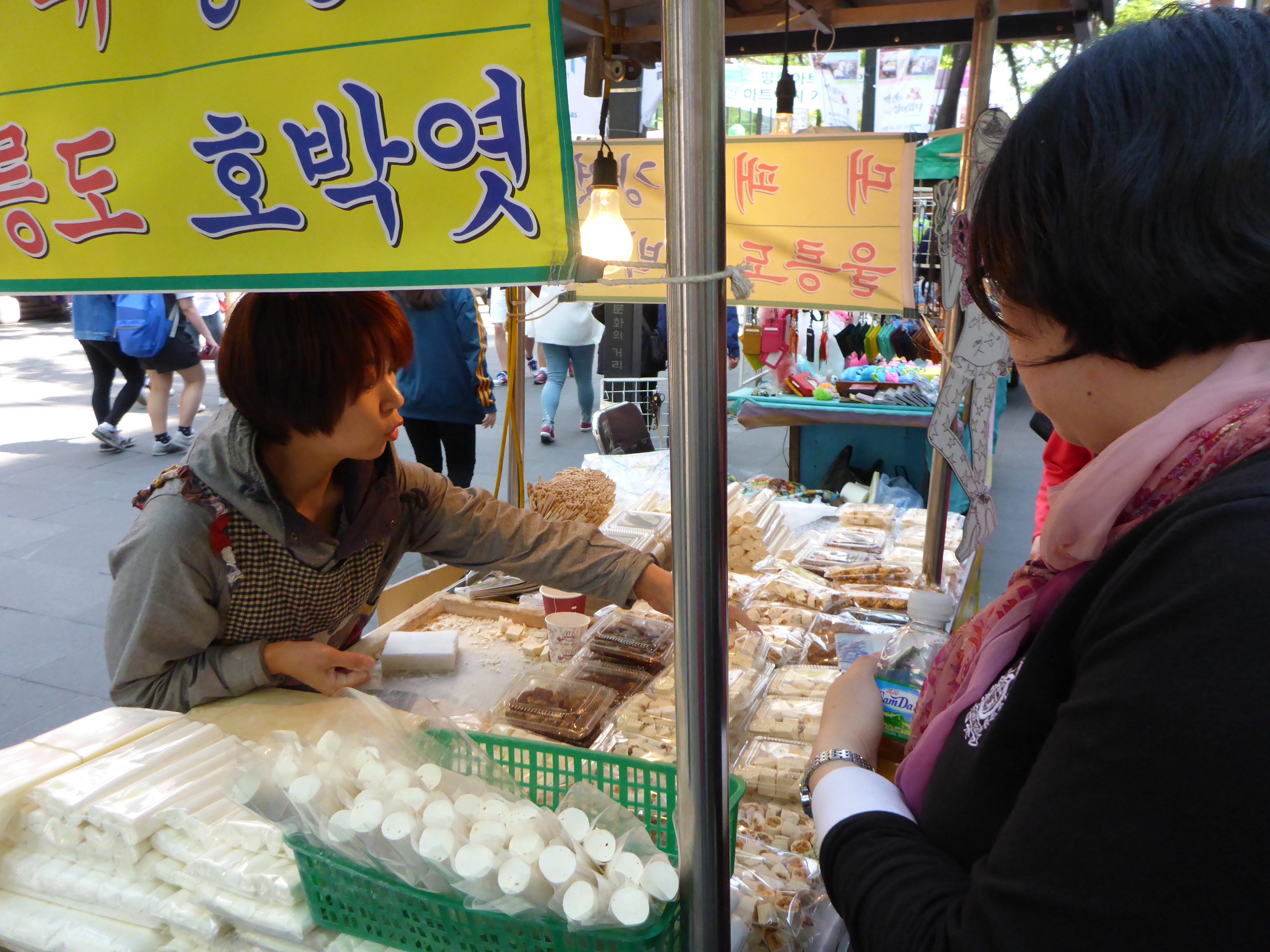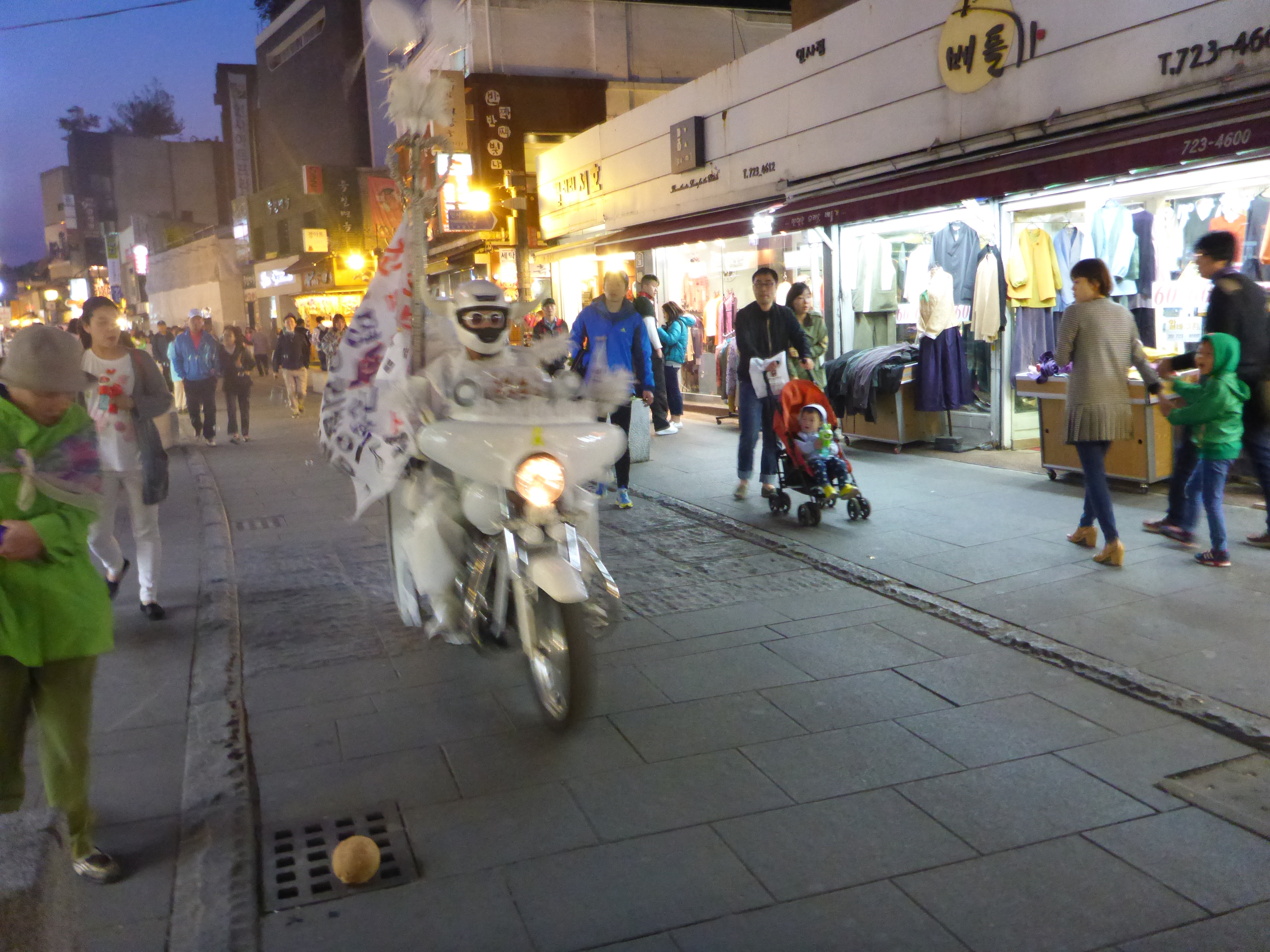 They took us a few blocks further, to the Insadong shopping area; the pier 39 of Seoul, a long, very crowded, promenade of tsotchke shops and street vendors.