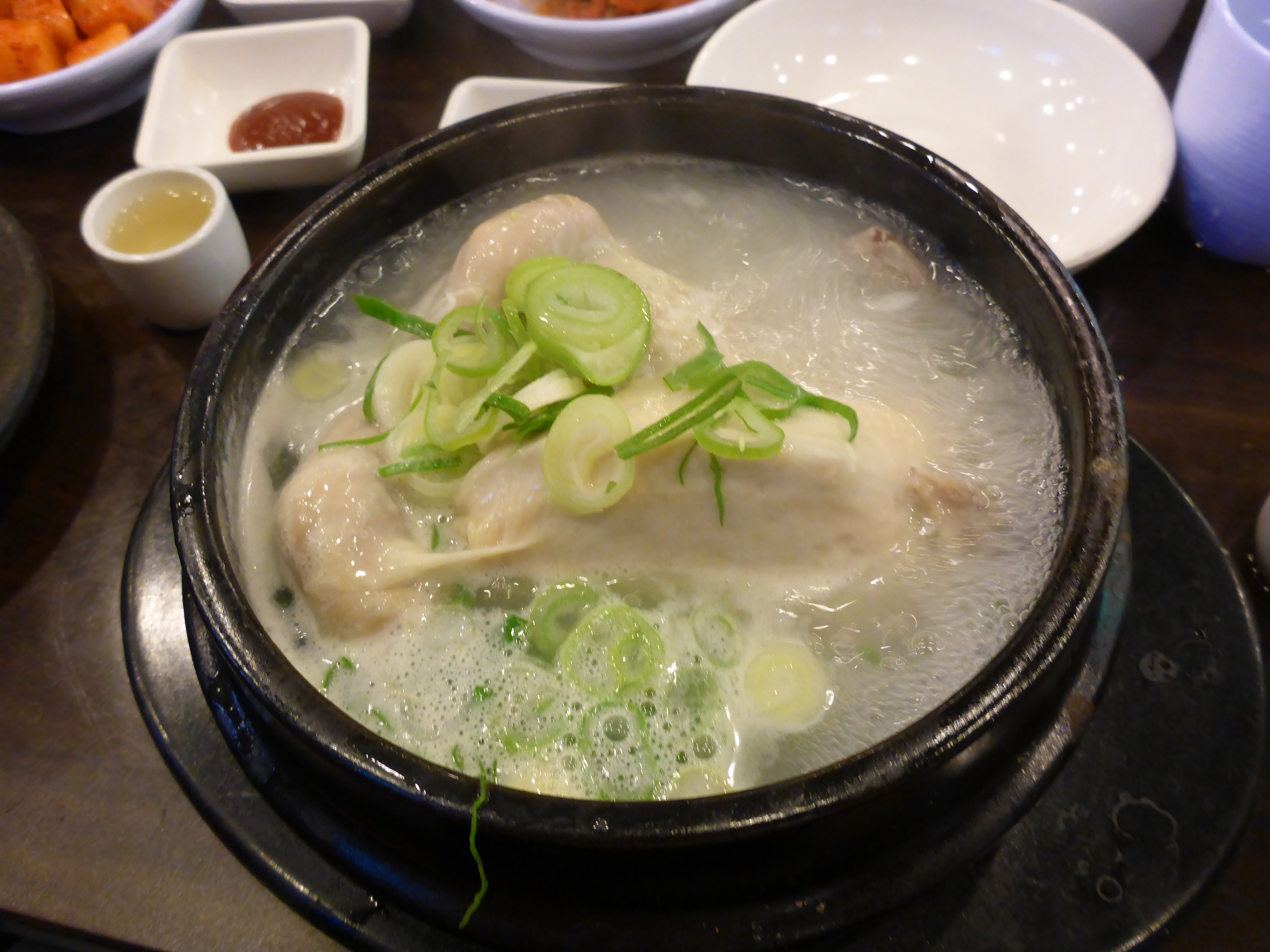 I don’t know what I was envisioning, maybe a woman around my age, one who was really into food and beer and Seoul, and, well…fun. What we got instead was a rather serious woman (who possibly could have been my age but I’m guessing she was closer to her mid 40’s) her slight, limited English-speaking husband, and her fairly silent 14 year old. They walked us to lunch, where we would try Samgyetang, a chicken ginseng soup that is traditionally served in the summer, to help Koreans replace the nutrients lost while sweating.