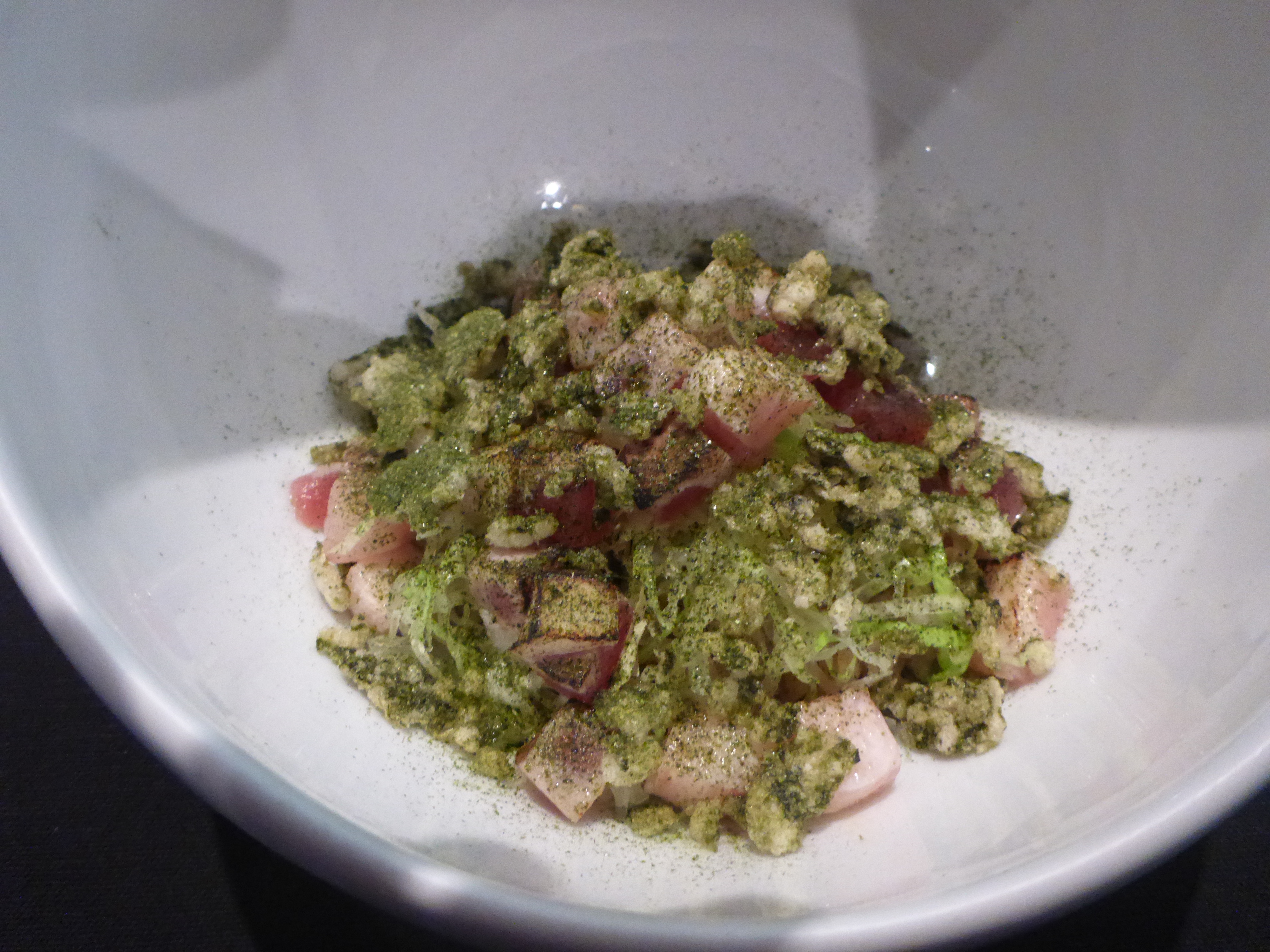 The fish course began with the sea urchin rice, another dish that really stood out to both me and Randi. It completely encompassed the taste, and the feeling, of a walk on the beach. The urchin was so fresh, and briny and soft, and the rice gave it that sandy, poppy texture. The chef really accomplished what I believe he set out to do by evoking not just wonderful flavor, but the memory and feel of a time and a place.