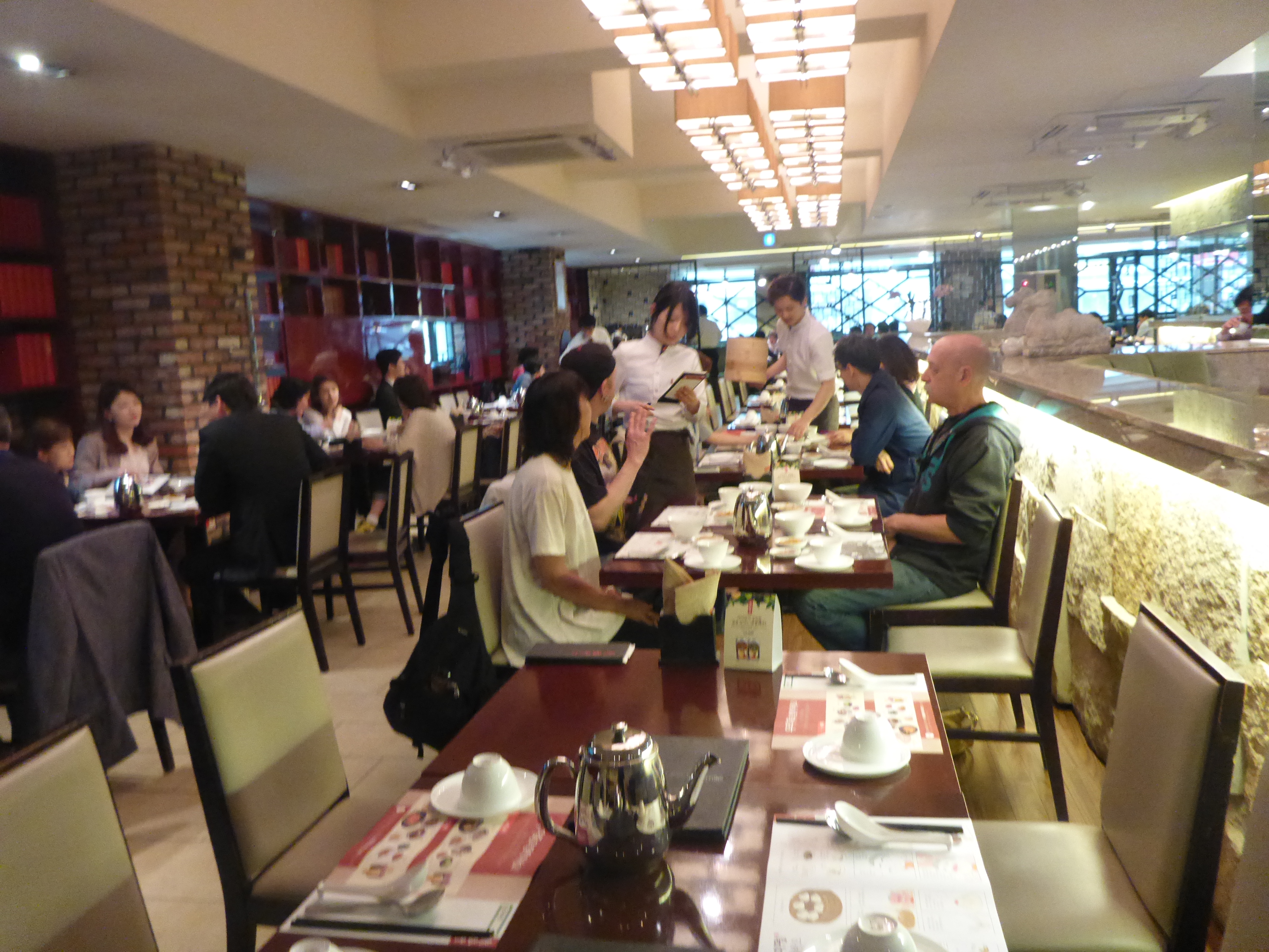 There is a certain lack of warmth that comes with that system to be sure. The overall feel is a bit lacquered, and almost a little formal, which is just kind of odd when you are used to getting your dumplings in some greasy dive in San Francisco’s Chinatown. There were lots of suits and pearl necklaces and things. Dressed up folks eating dim sum was a definite first for me.