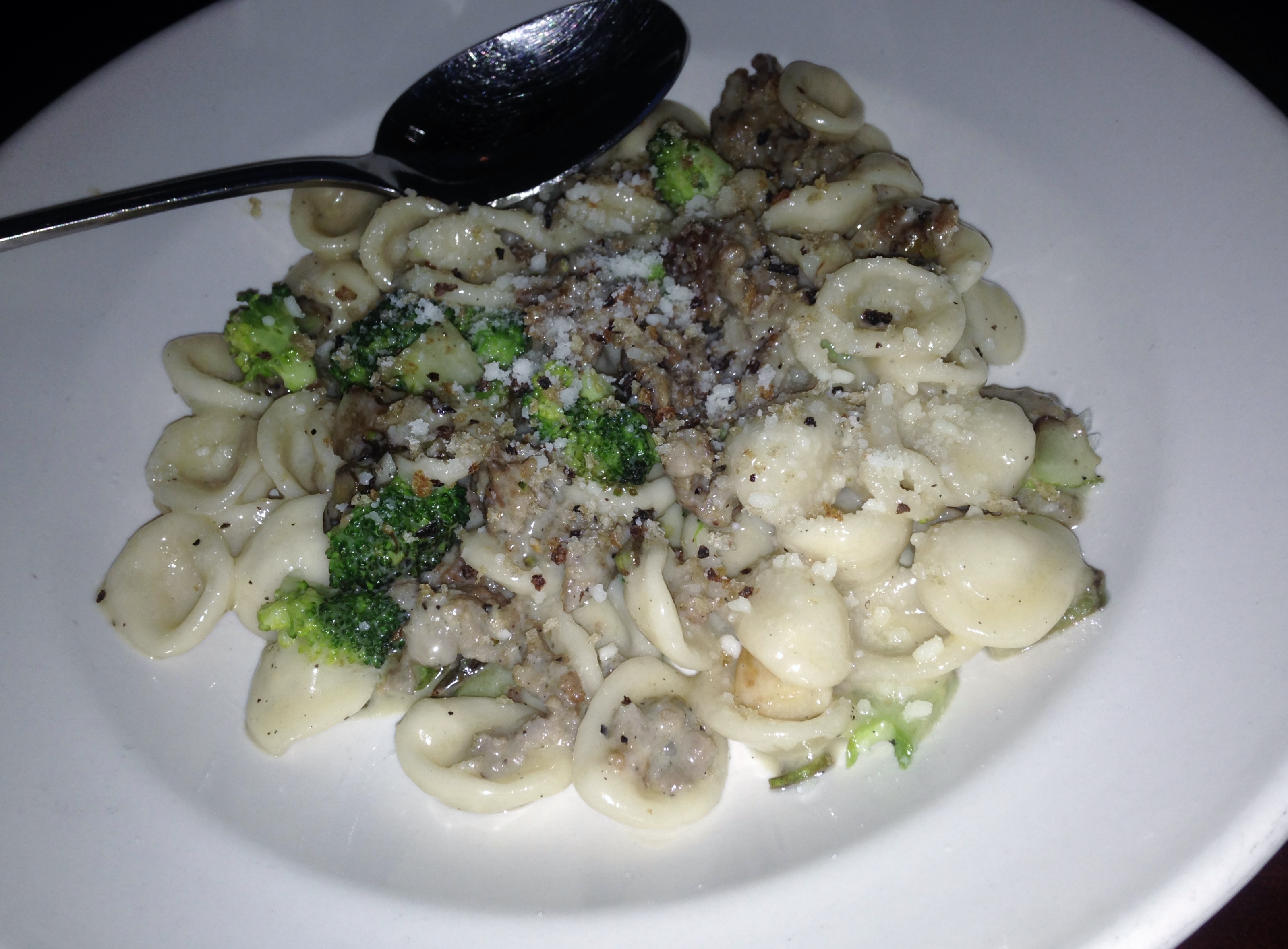 For our pasta course we reluctantly went with Mikey’s choice of the orichette with sausage and broccoli. I dunno…yawn, right? Wrong. It was the most decadent, fabulous, rich, delicious, concoction. Also, Mikey required that we all fawn over him for making a good choice and kept referring to it as “his” as though we weren’t allowed more than a taste.