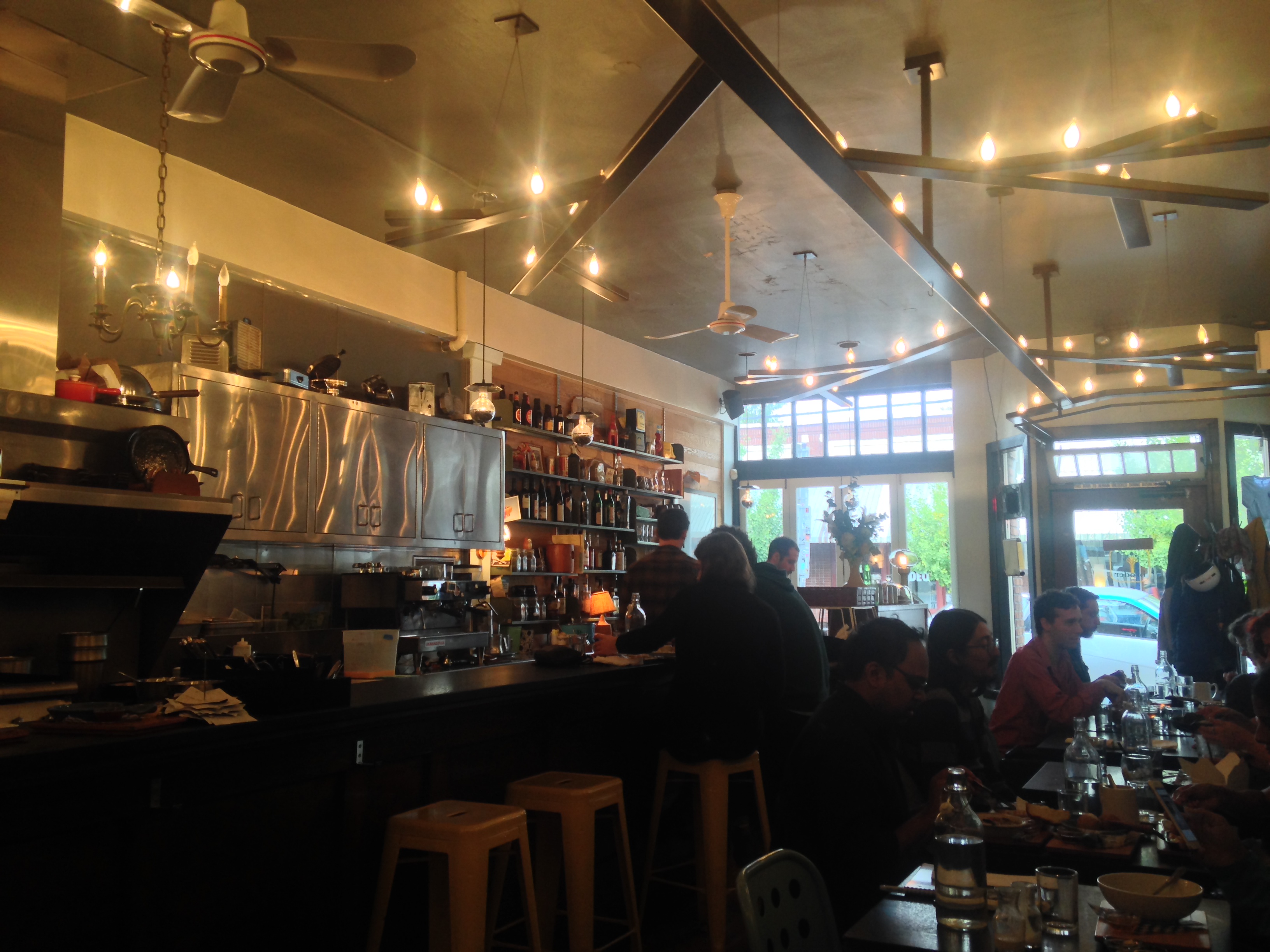 to the warm, cozy, yet sharp interior. There is a tree theme of sorts, on their t-shirts and what-not, that is replicated in the long, branching light fixture that runs the length of the ceiling.