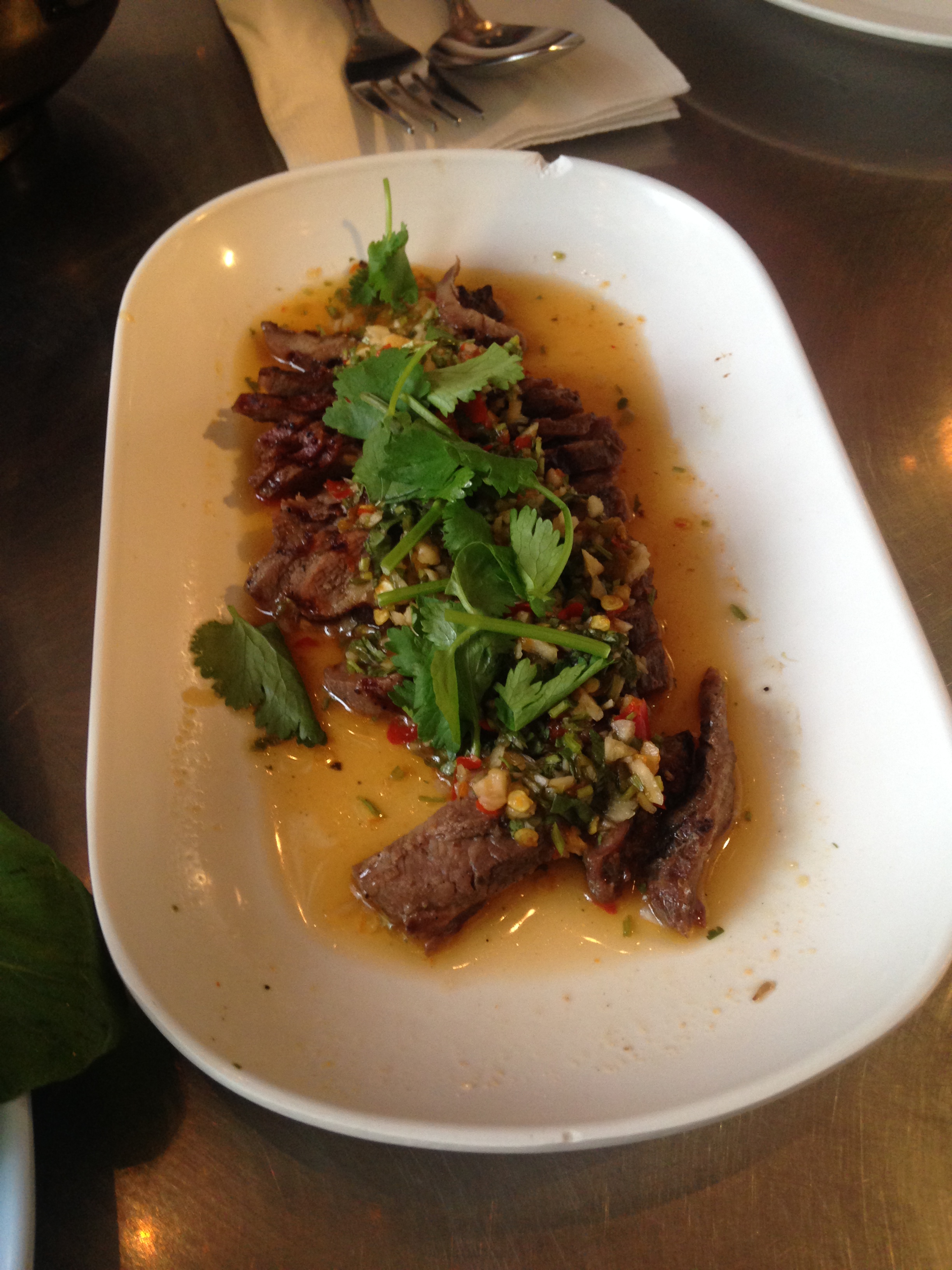 Randi and I were fools for the fresh, bright flavors (think lime, garlic, and coriander) and juicy, soft meat. Our server recommended that we get an order of sticky rice to use as a conduit for picking up the meat.
