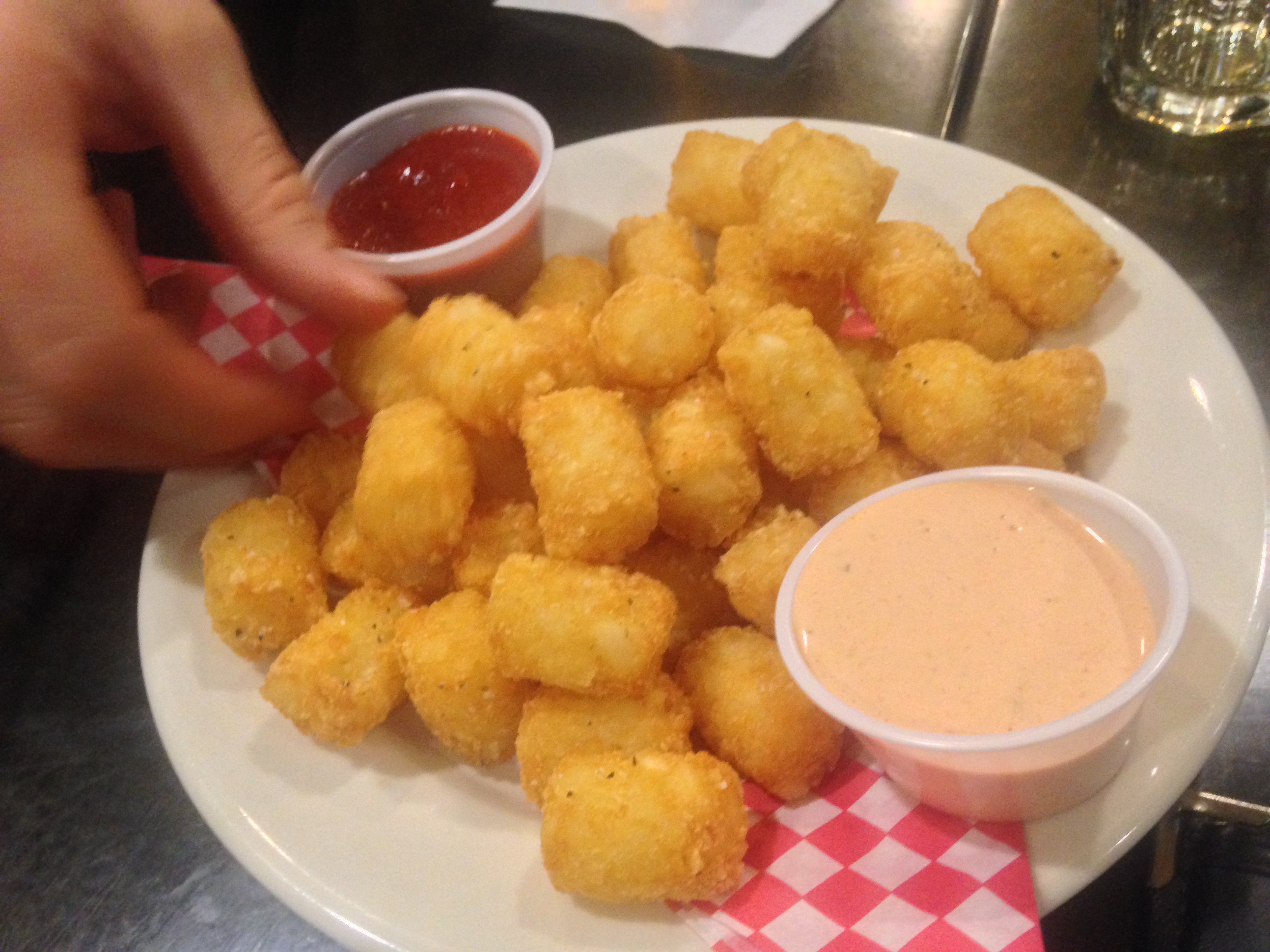 There were a variety of dipping sauces from which to choose; my favorite was the honey mustard, and I don’t remember them all, but I’m fairly certain there was also a BBQ and a ranch. Other than that, you got me.