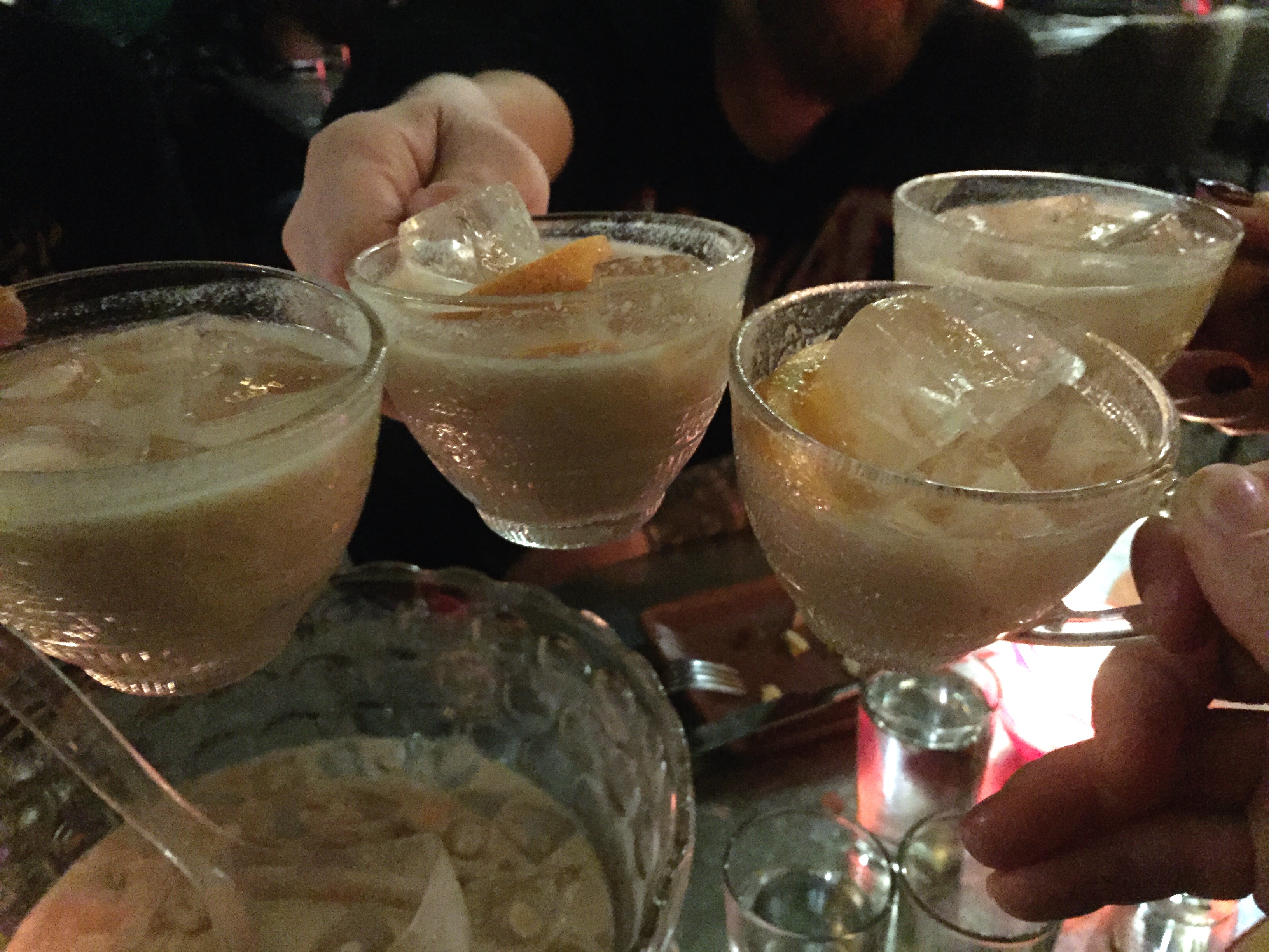 We had finished Karl at this point, so we ordered the other cocktail intended for four people, the cinnamon toast punch. As I’ve discussed in previous posts, I totally dig me a milk punch, and, it further goes to show that it is one trendy drink right now. The punch came in a big old textured glass punch bowl