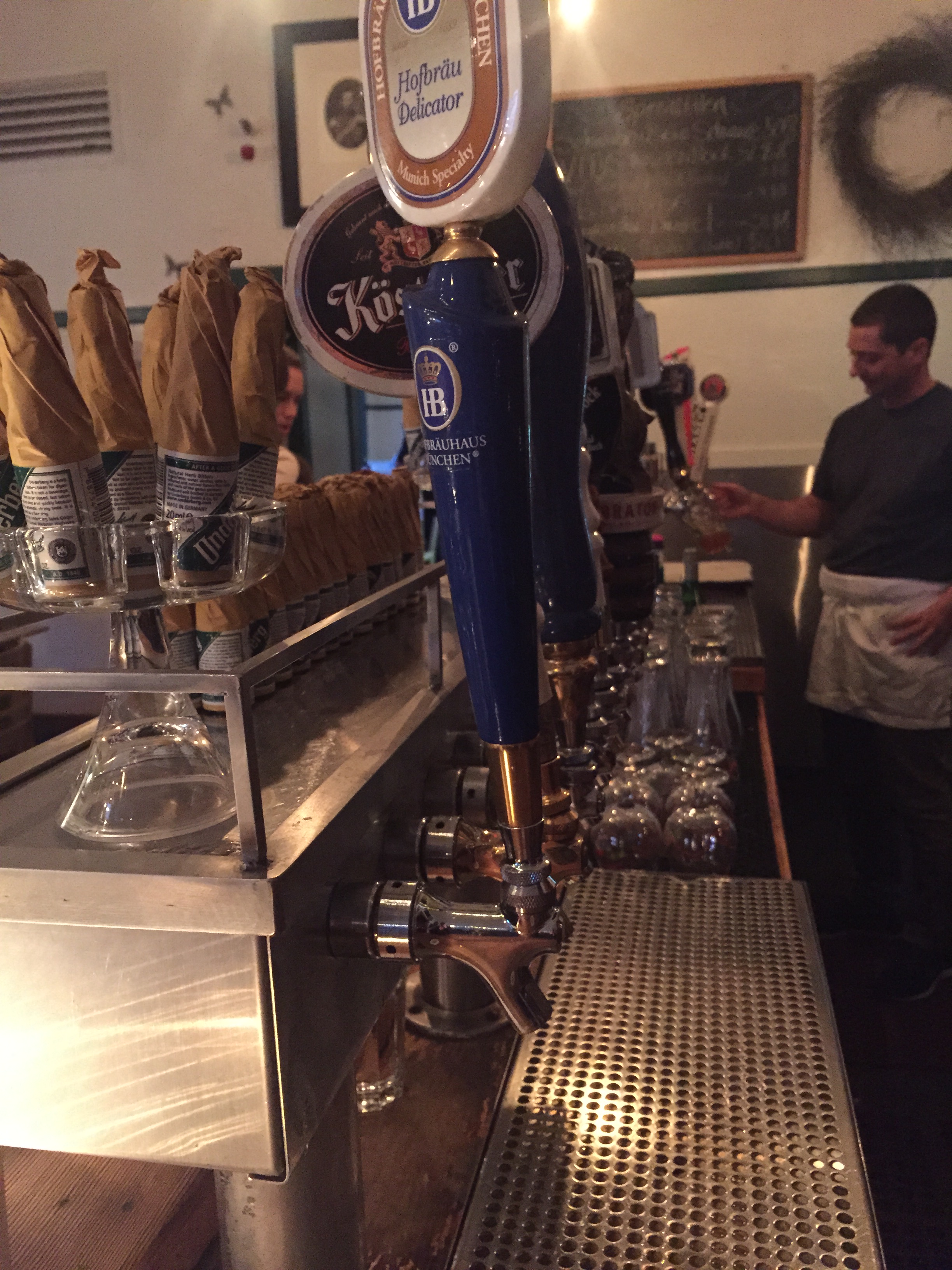 They have a nice variety of German (and a few Belgian) beer selections, organized on the menu by type; Pilsners, Hefeweizens, Bock/Dopplebock, Kolsch, etc. offered in either bottle or draft, depending.