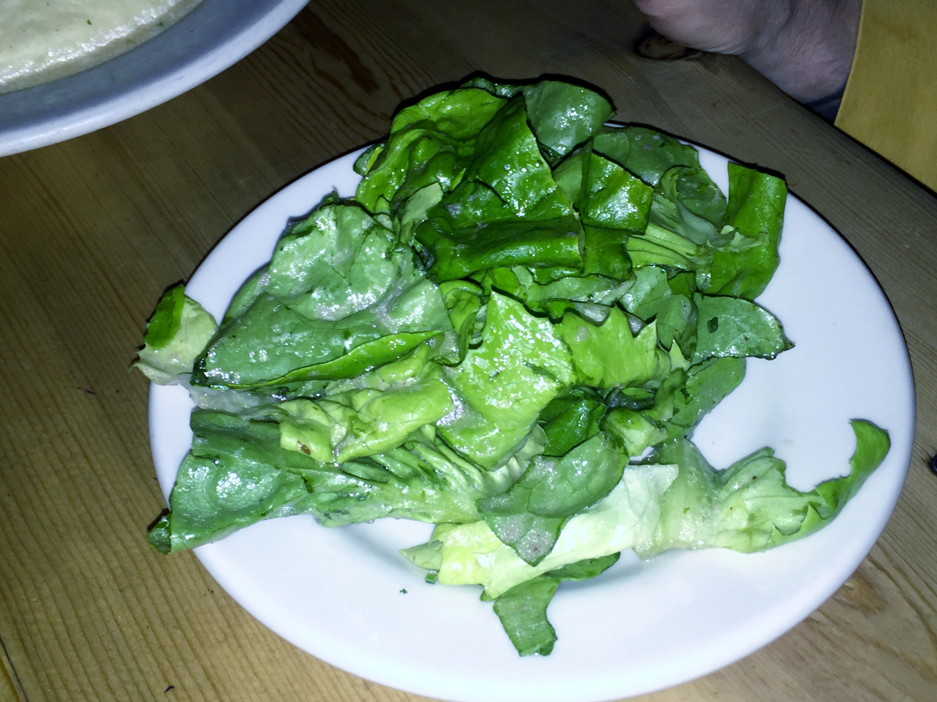 The Jagerschnitzel comes with a simple green salad side, which is literally just some brightly dressed lettuce (shown here, in one seriously bright picture).
