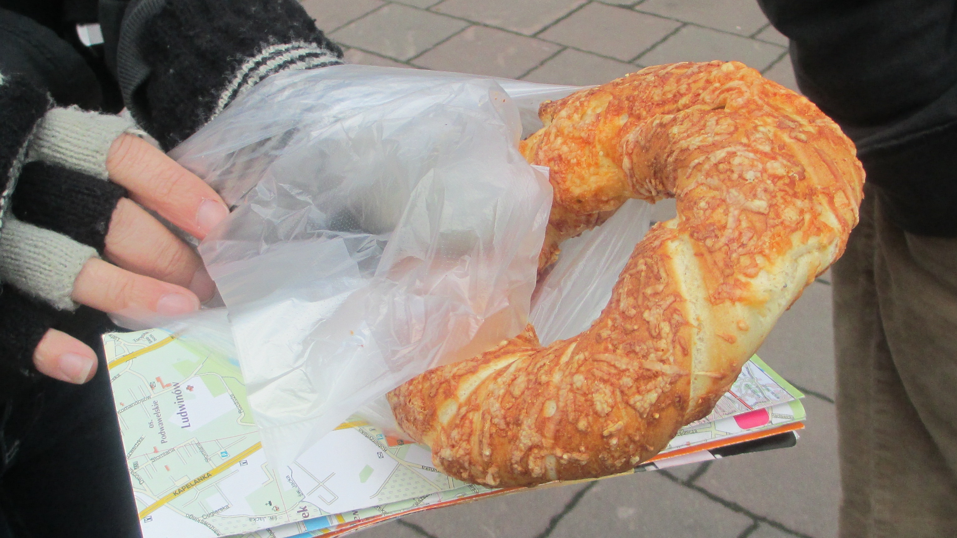 PB was not quite open when we arrived. The four of us were entering the beginning phases of a crisis of hunger so we hit this pretzel cart located in front of the church across the street; Krakow is famous for pretzels, and being a fool for such a thing, I was stoked that an opportunity to try one suddenly presented itself