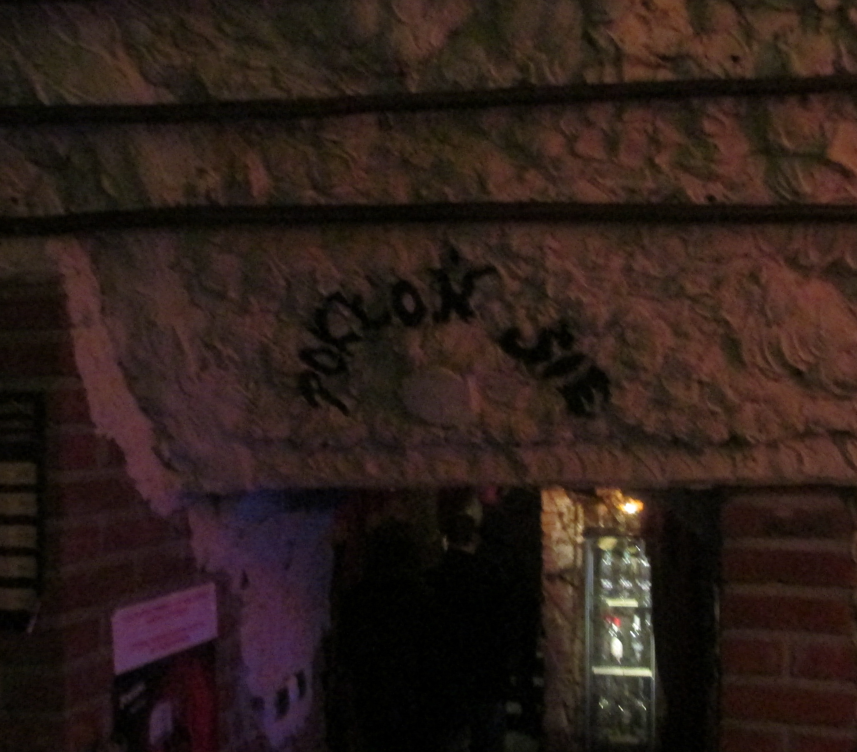 Downstairs, there was one small bar that sat four; then a side room (down more stairs) with a cobblestoned floor, maybe three arched doors to either side, each flanked with heavy red curtains, that led to rooms with tables. We stayed bellied up to the bar where Jake immediately engaged the bartender, who responded in kind by challenging Jake to drink more and more ridiculous and expensive shit.