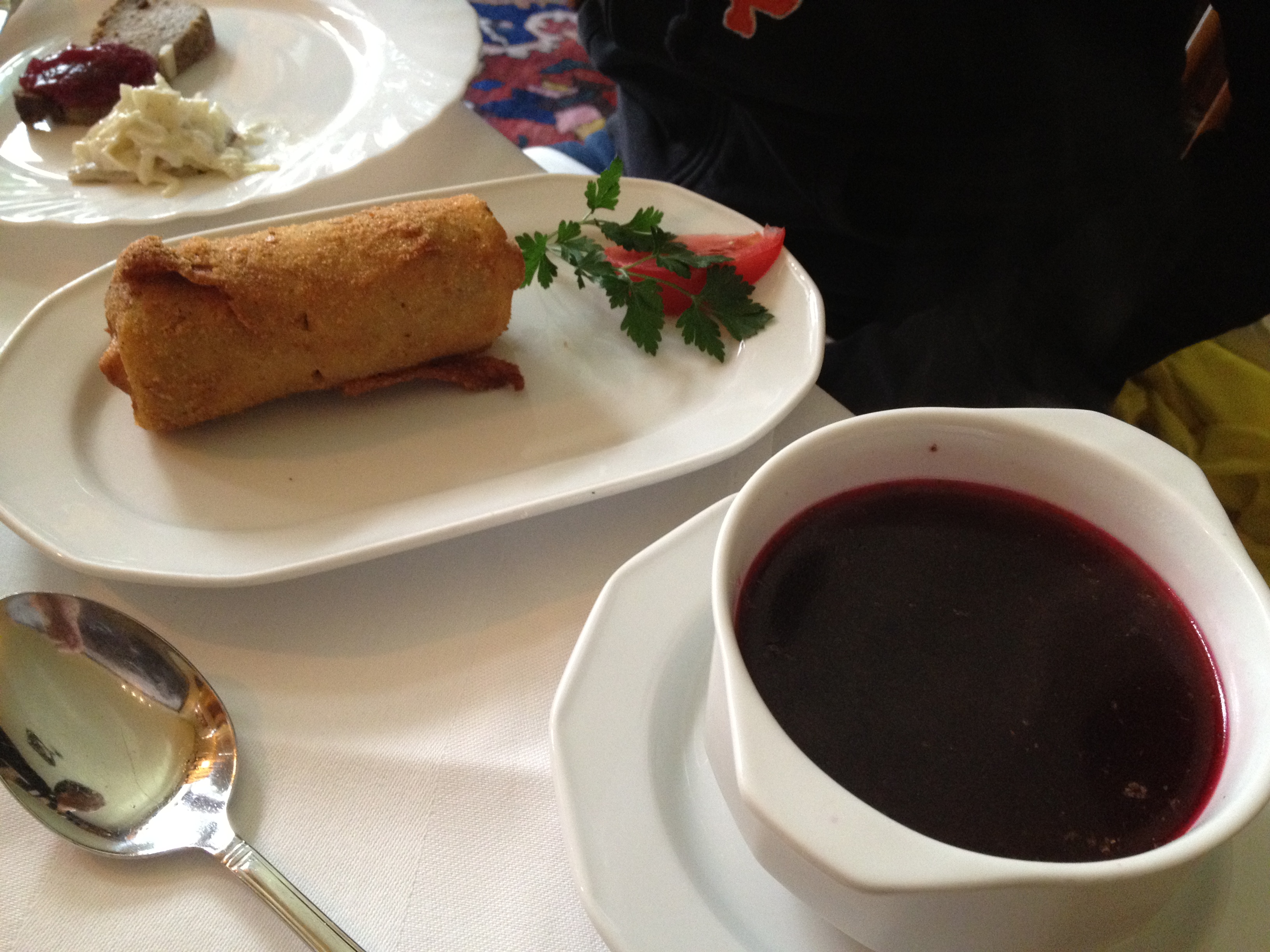 Their menu is enormous, which in America indicates that the freezers are bursting with pre-made Sysco entree’s and the like, but in Poland, with a list full of game and offal, it means nothing goes to waste. This menu provided an endless variety of mouth-watering choices, each dish more appealing than the last. After much negotiation at the table, we narrowed it down to venison pate, borscht with a meat croquette, and herring in cream and dill sauce.