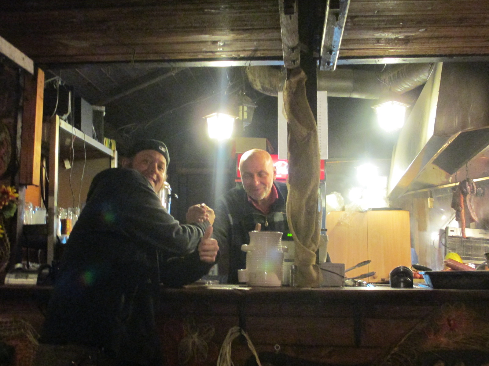Randi and I ordered a couple of local dark beers that were super bizarre and tasted like pure sugar, while Jake and Mikey were roped into drinking some raspberry syrup, absinthe and tabasco shot