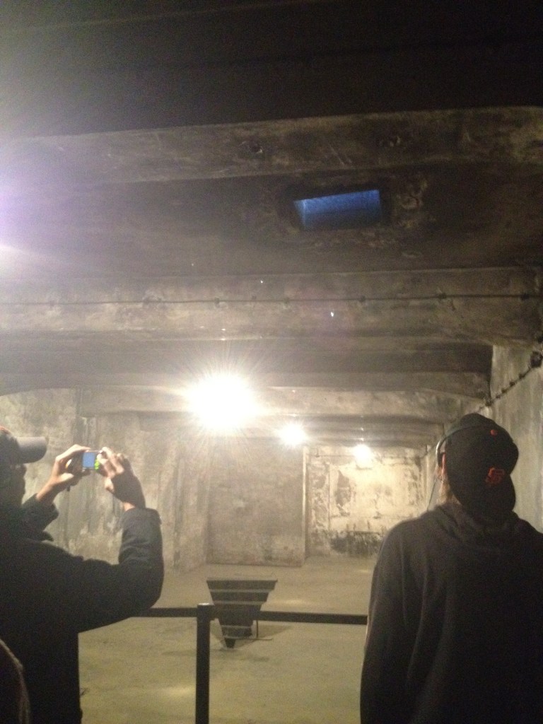 ????????????????????????????????????????????????????????????????? Inside the gas chamber. That is a memorial sculpture on the floor