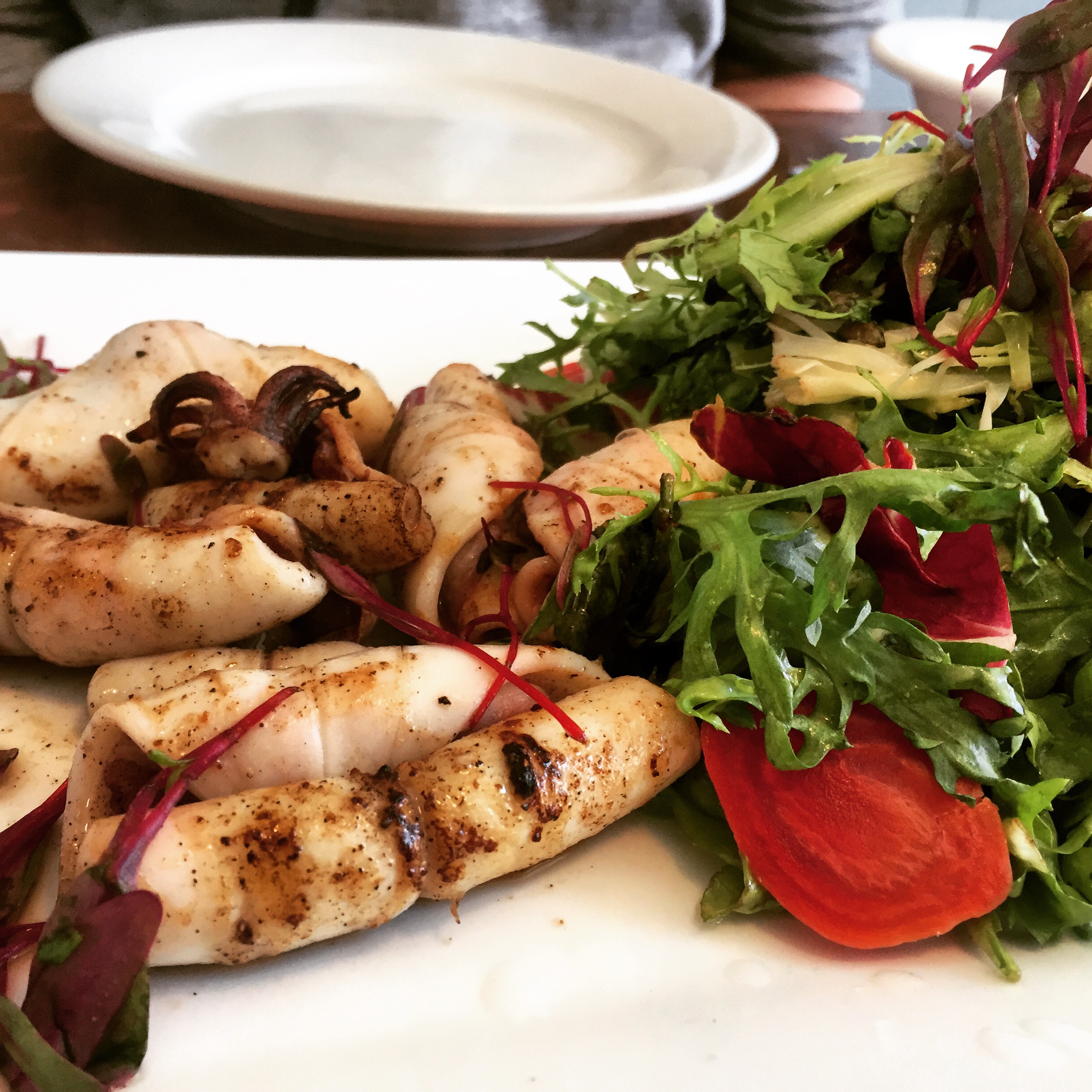 There is a grilled salad section, which is where I could really see myself getting in to trouble. Like I may have to wrestle with my car (Sid, if you want to be on a first name basis) to stop him from taking me there for a weekday lunch, as though some demon inside of me (or Sid) will take over and I will wake from a fugue state, greens and fish in mouth, dressing on face. It’s everything for which I am a stooge; fresh, crisp, bright, greens, and a lean protein from the sea; calamari, tombo tuna or grilled white gulf prawns; (though sometimes when I am stalking them on Facebook I see hangar steak as well). We ordered ours with a grilled calamari so soft and juicy, positively lousy with smokey grill flavor.