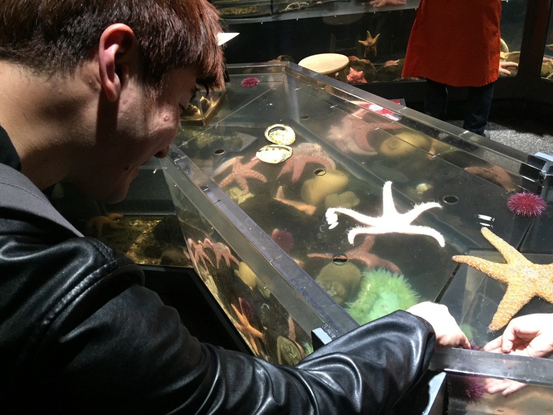 To my absolute favorite, everywhere, always, the mesmerizing jellyfish tank, where the alien discs float and undulate, their insides lit by the changing neon lights, for all the world to see
