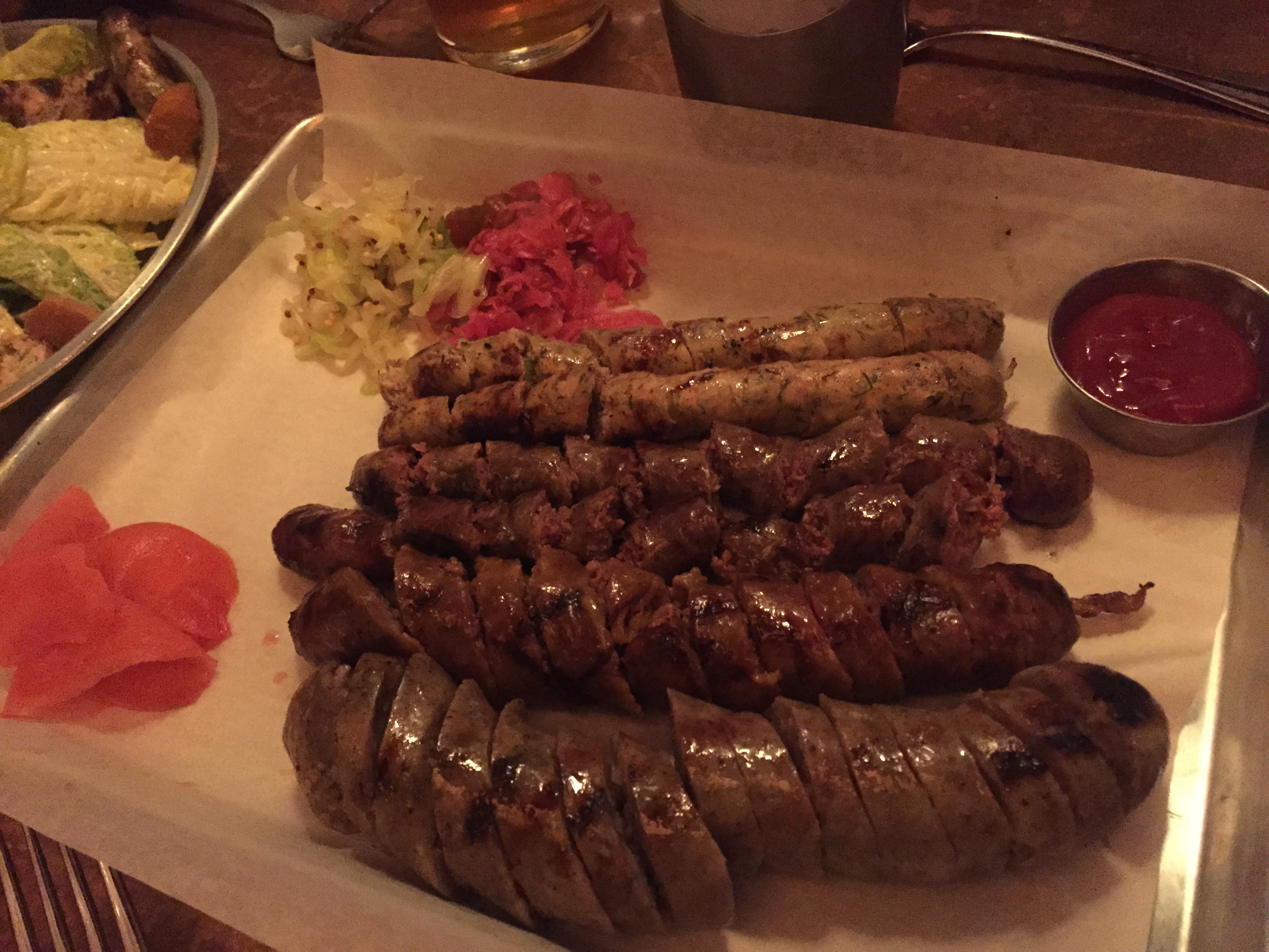 The spicy habanero chicken and lamb sausage were standouts, the lamb, nice and gamey, the habanero, full flavored, well seasoned, and spicy.