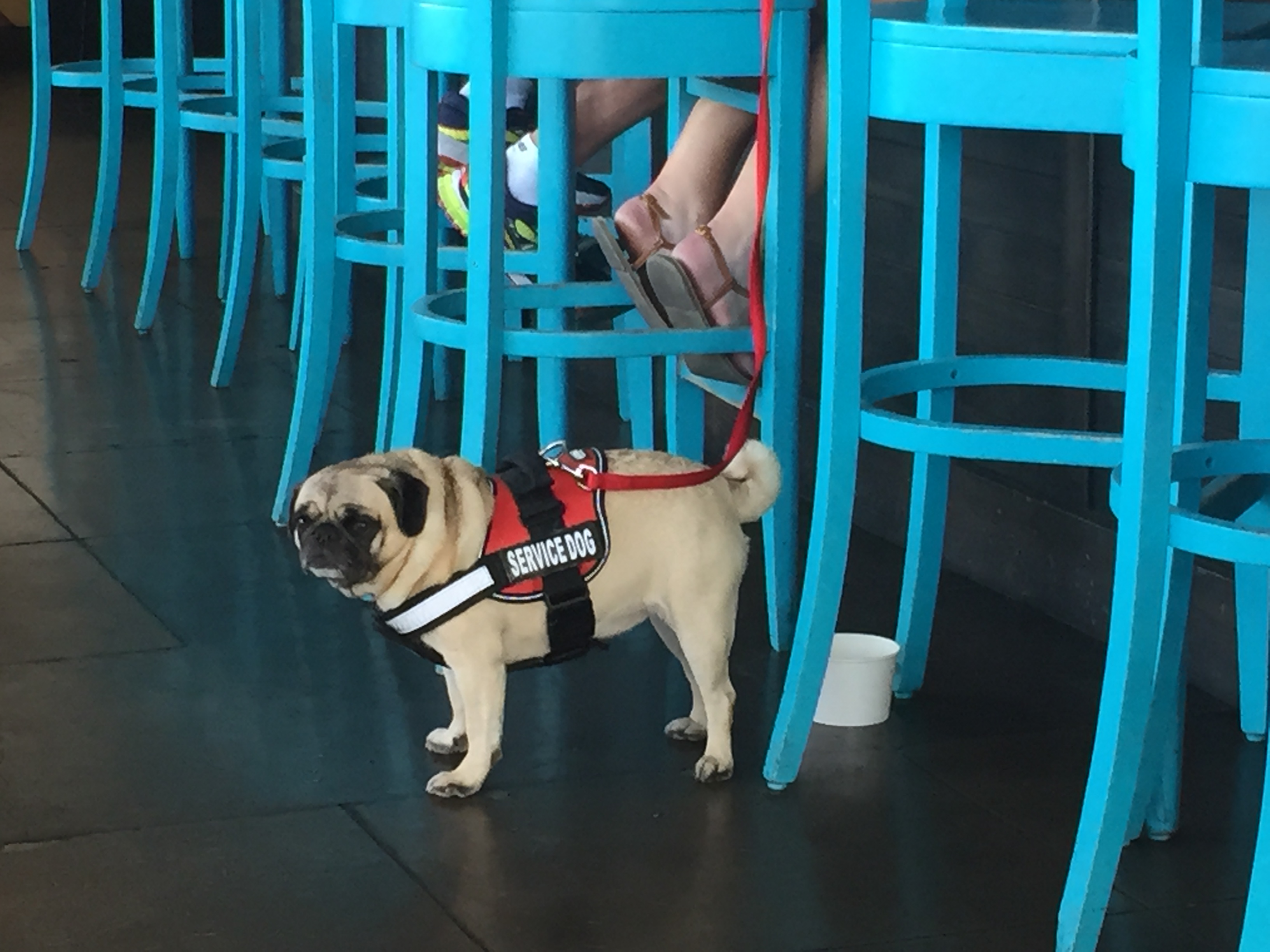 Brunch was well executed and satisfying, not mind-blowing; the hash and french toast emerged as crowd favorites, served to us by one ridiculously attentive and friendly server. Most importantly, this service pug. You know, providing service.