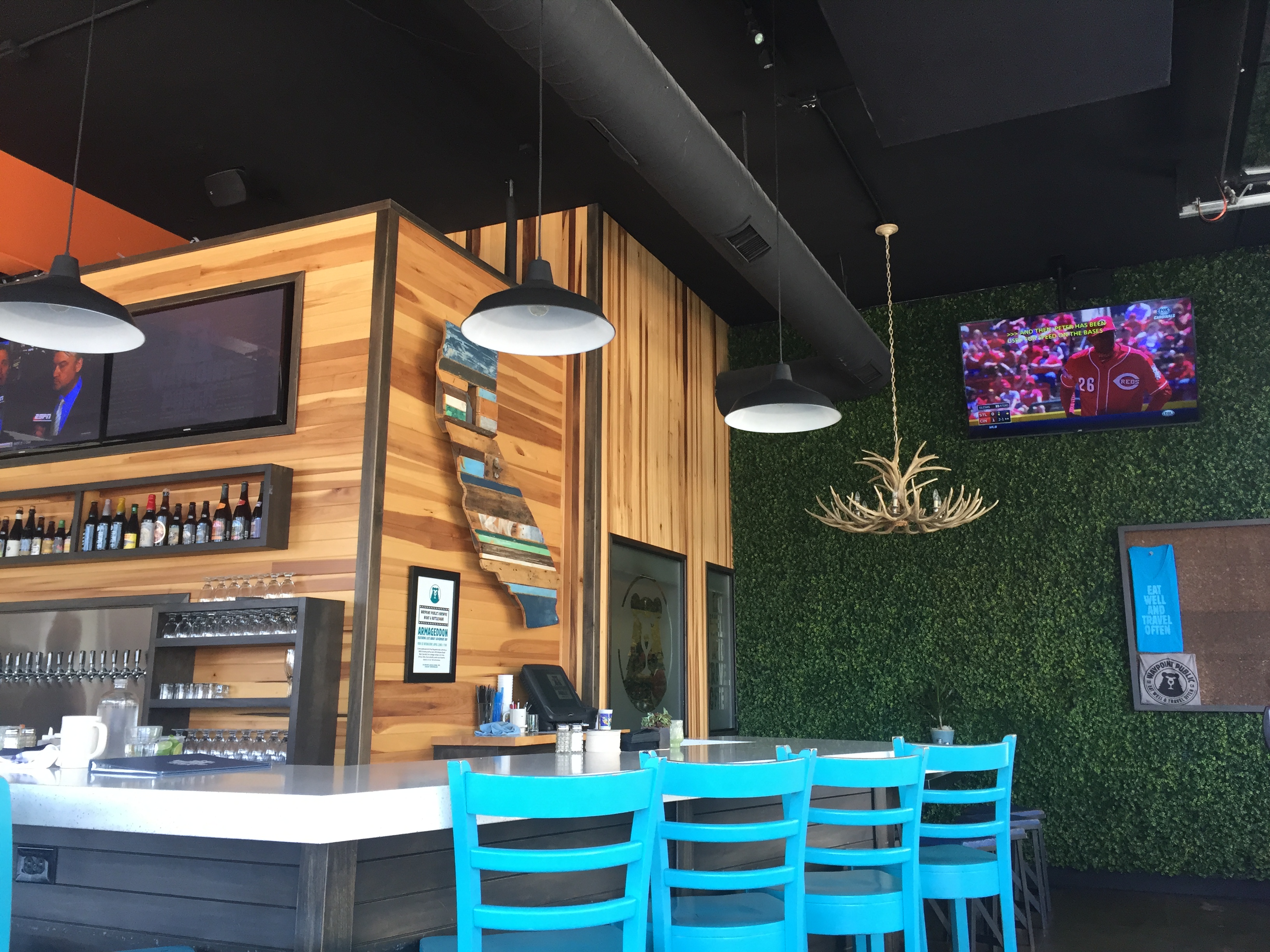 With a nice long bar outfitted with bright blue stools, plenty of local beer on tap, and a trio of televisions