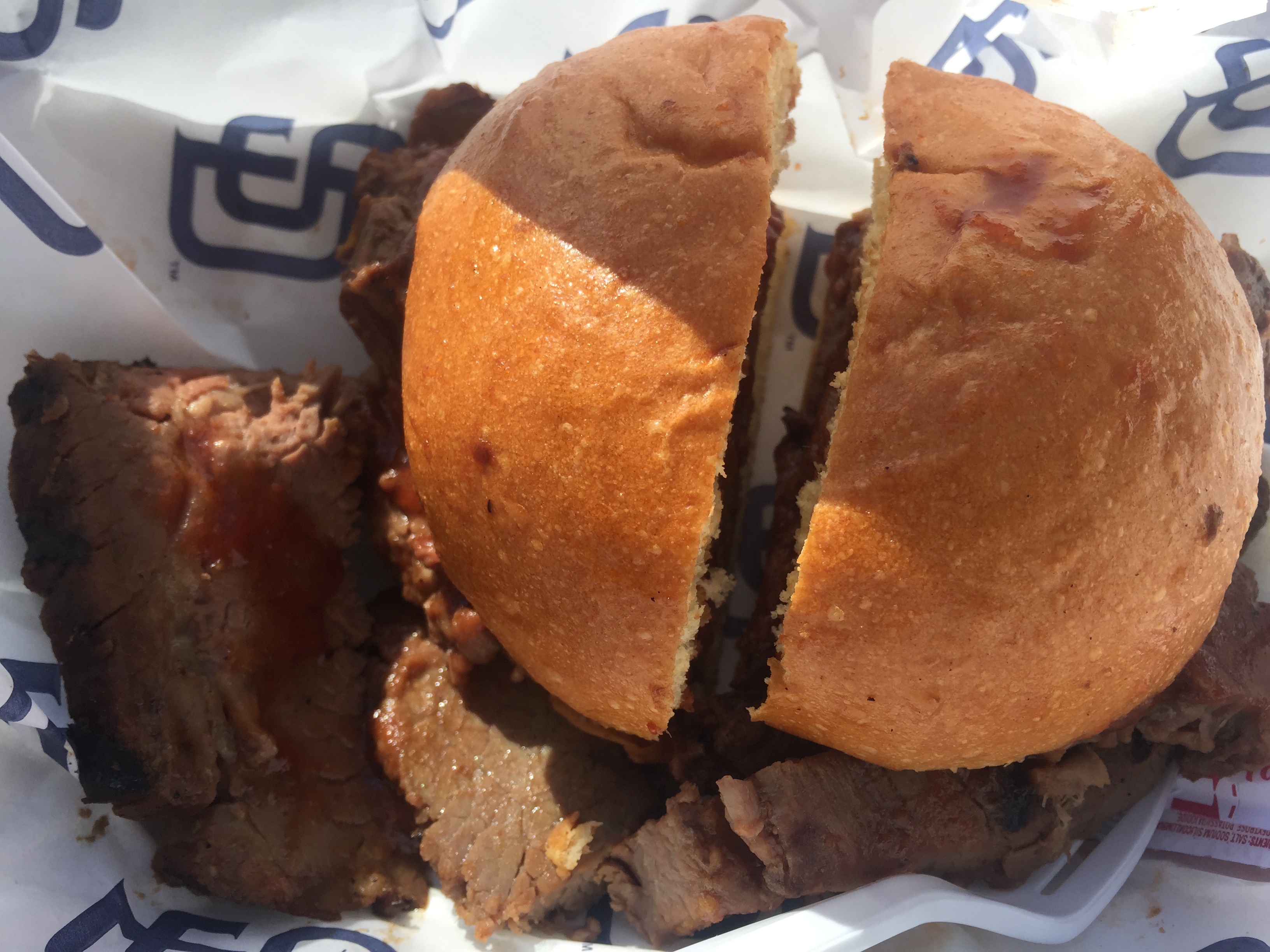 I know we had all-you-can-eat seats. In fact, I will never forget. However, we did also need to sample what is, perhaps, the parks most famous offering, Phil’s BBQ. Also, it was sort of impossible not to get drawn in by the smell of the smokers, chugging the alluring scent of meaty campfire smell into the air. Phil’s cranks out a nice, smoky, not overly sauced brisket, inside a soft, sweet bun.