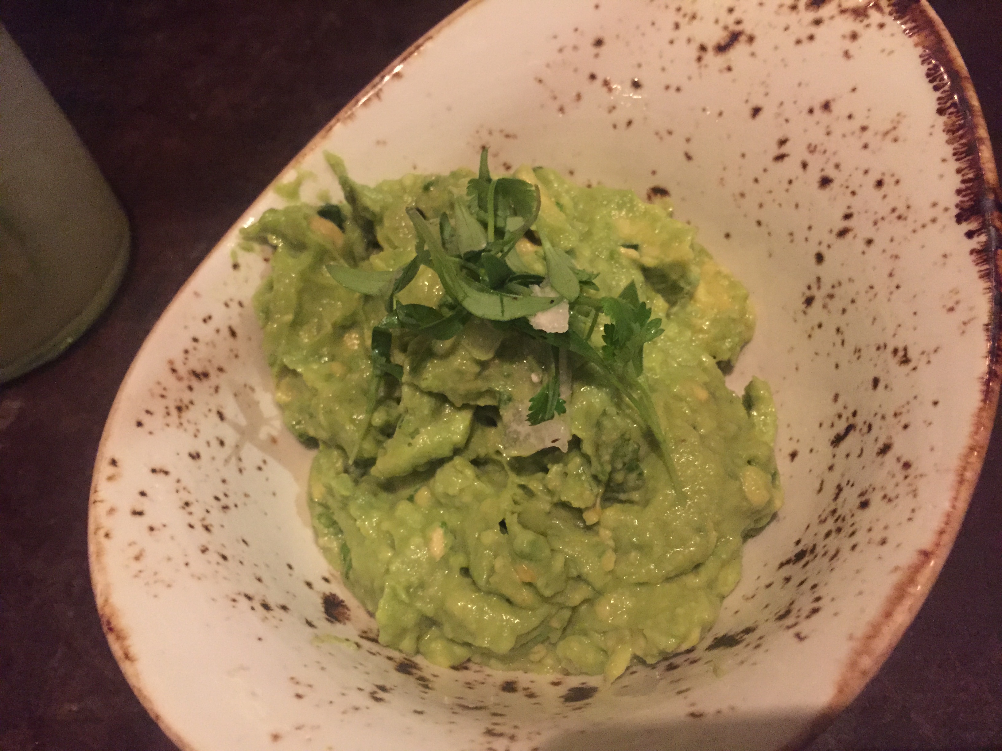 Puesto serves an upscale version of Mexican street food atop rustic looking plate ware, alongside some really zingy margaritas, all within a slightly fancy space housed within a fussy-ish strip mall. They offer four versions of guacamole; guac with parmesan, lime and orange and cilantro, guac with lump crab meat, guac with pomegranate, mango and candied nuts, and finally, your basic mixture of avocado, onion, lime and cilantro. We chose to keep it simple and go traditional