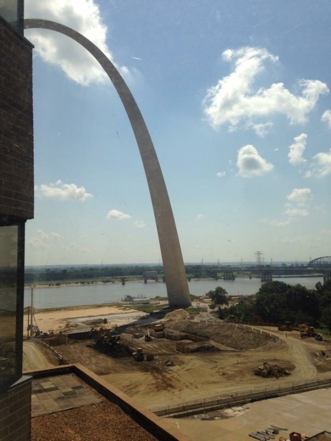 as they build what will be known as CityArchRiver park, an outdoor expanse at the base of the behemoth “with biking and running trails, space for outdoor concerts, art installations and a new museum commemorating westward expansion. “http://www.cityarchriver.org/, which translates loosely to, “you will be woken up by construction noise fairly early in the morning until some unforeseen future date.” The noise wasn’t terrible intrusive, but, it was a reality. I’m sure we have that project to thank for our reasonable room rates; totally worth a little morning clamor. For now though, it was night, and the arch glistened and shone, as though it were wearing some sort of shimmery evening gown.