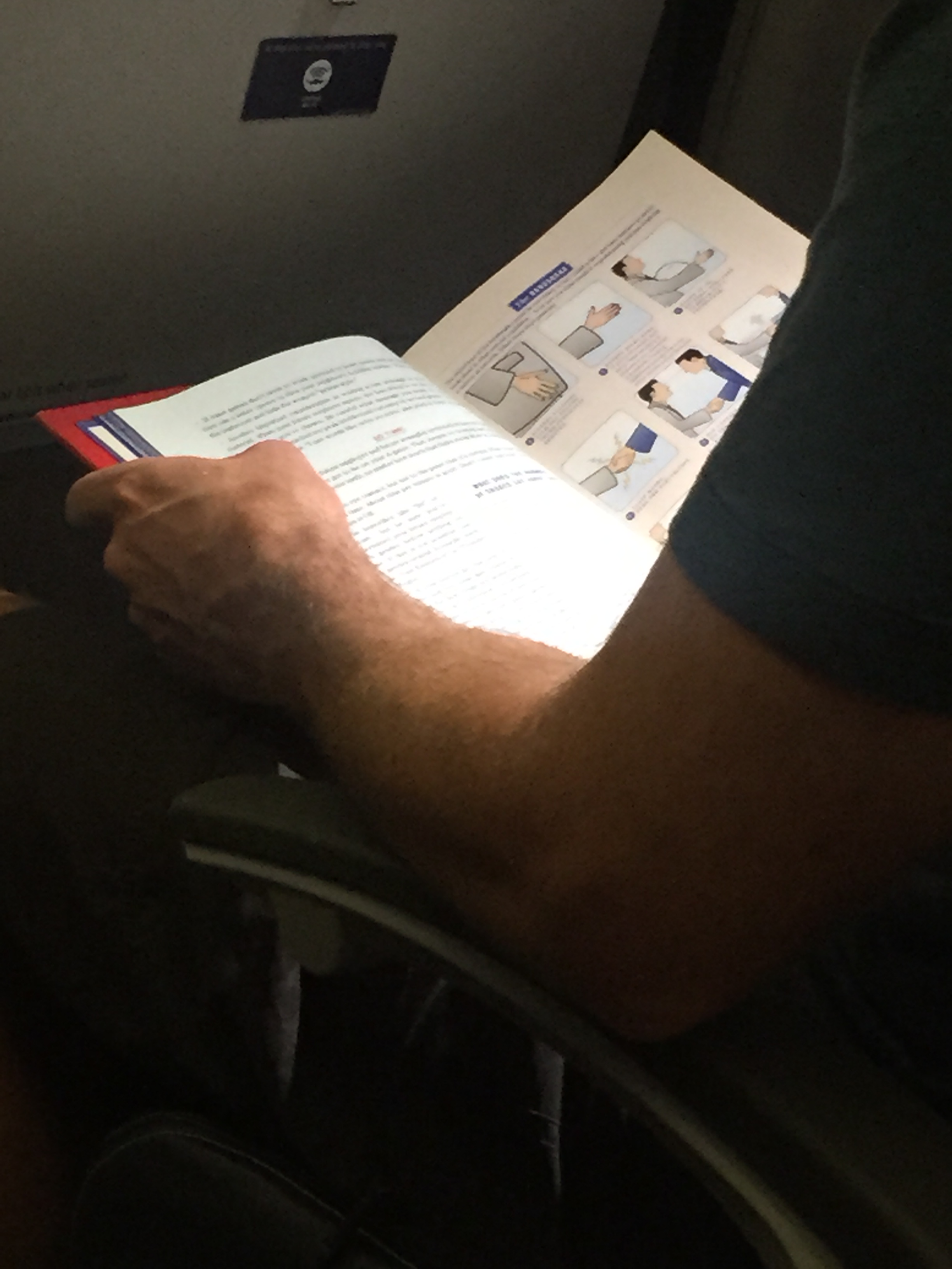 In front of us, a man read diligently, this illustrated guide to the ever elusive, perfect handshake.